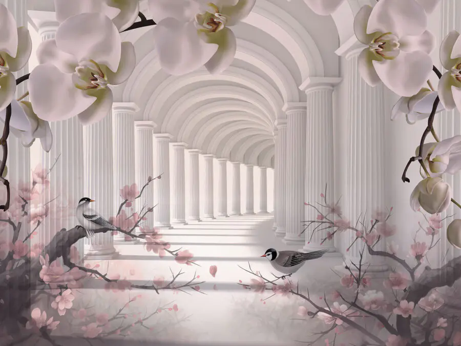 Wyobraź sobie, że przechodzisz przez elegancki łuk, otoczony kwitnącymi kwiatami i delikatnym szeptem ptaków – ale w swoim własnym salonie! Ta fototapeta ścienna “Elegancki łuk z kwitnącymi kwiatami” przekształci każdą przestrzeń w senną ucieczkę. Pomyśl o kremowych kolumnach, delikatnych kwiatach i tych uroczych małych ptaszkach tworzących spokojną atmosferę. To jak wejście do bajkowego ogrodu za każdym razem, gdy wchodzisz do pokoju. Idealny dla każdego, kto kocha odrobinę natury i szczyptę klasycznego piękna. Niemal poczujesz delikatny powiew wiatru i delikatny zapach kwiatów. Wyobraź sobie, że zatapiasz się w sofie z filiżanką herbaty, czując się jak w innym świecie. Ta fototapeta, ze swoim spokojnym i pełnym wdzięku klimatem, sprawia, że chcesz wziąć głęboki oddech i zrelaksować się. Prawdziwy wyróżnik dla każdej ściany!