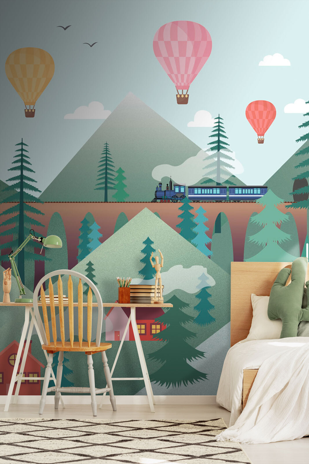 Czy kiedykolwiek marzyłeś o unoszeniu się w przestworzach w balonie na gorące powietrze? Cóż, ta kapryśna fototapeta ścienna “Pink Hot Air Balloon” może być kolejną najlepszą rzeczą. Wyobraź sobie przekształcenie pokoju dziecięcego lub pokoju zabaw w pastelowy raj, w którym kolorowe balony dryfują nad uroczymi domami i majestatycznymi górami. To jak strona z bajki – taka, w której każde spojrzenie pobudza wyobraźnię twojego malucha. Jasny, zabawny i naprawdę uroczy, wnosi poczucie spokoju i zachwytu do każdego pokoju. Poza tym, kto nie pokochałby przytulnego, malowniczego tła dla opowieści na dobranoc lub przygód podczas zabawy? Te drobne szczegóły – puszysty dym z kominów i pogodne góry – dodają odrobinę magii, która jest tak zachęcająca. To nie tylko dekoracja; to codzienna dawka radości opakowana w fototapetę.