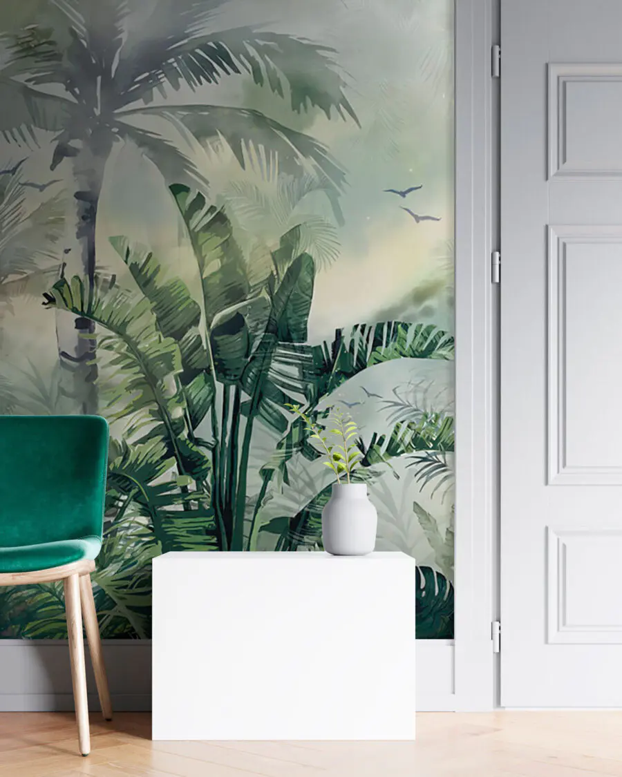 Przekształć dowolny pokój w bujny raj dzięki tej oszałamiającej fototapecie przedstawiającej mglistą dżunglę. Wyobraź sobie wędrówkę przez gęste liście, wdychanie świeżego powietrza – ach, ten spokój! To jak mini-wakacje w domu, ale bez stresu związanego z podróżą. Miękka zieleń i delikatne mgiełki mgły zachęcają do spokojnych wibracji, idealnych do przytulnego kącika do czytania lub spokojnej ucieczki z sypialni. Poza tym, kto nie chciałby czuć się tak, jakby codziennie popijał drinka na tropikalnej wycieczce? Przygotuj się na przygodę na łonie natury, a wszystko to z wygodnej kanapy.