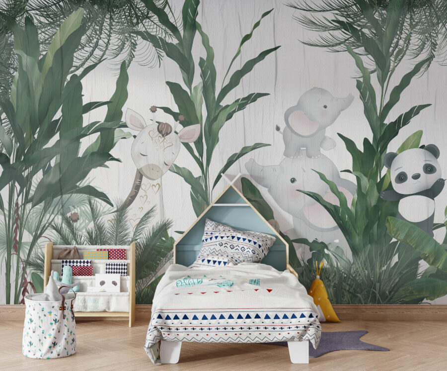 Instalacja tej fototapety jest jak zaproszenie kapryśnego lasu do swojego domu. Klimat dżungli wciąga, urzekając zarówno dzieci, jak i dorosłych swoim zabawnym urokiem. Wyobraź sobie bajki na dobranoc z tym czarującym tłem – wyprawa do dżungli bez wychodzenia z pokoju! To przyjazna mieszanka żywych odcieni zieleni i uroczych, spokojnych zwierząt, która sprawi, że każda przestrzeń będzie przytulna i pełna przygód. Dzieci mogą snuć niekończące się opowieści ze swoimi nowymi leśnymi przyjaciółmi. To po prostu magiczne.