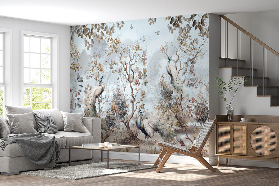 Chcesz wprowadzić odrobinę natury do wnętrza? Fototapeta ścienna “Bird Flying in the Sky” może być właśnie tym, czego potrzebuje twoja przestrzeń. Wyobraź sobie, że budzisz się w tej sennej scenerii eleganckich pawi kroczących wokół pięknie pomalowanych drzew. Delikatne odcienie i misterne detale sprawiają, że czujesz się jak w objęciach natury w swoim salonie lub sypialni.