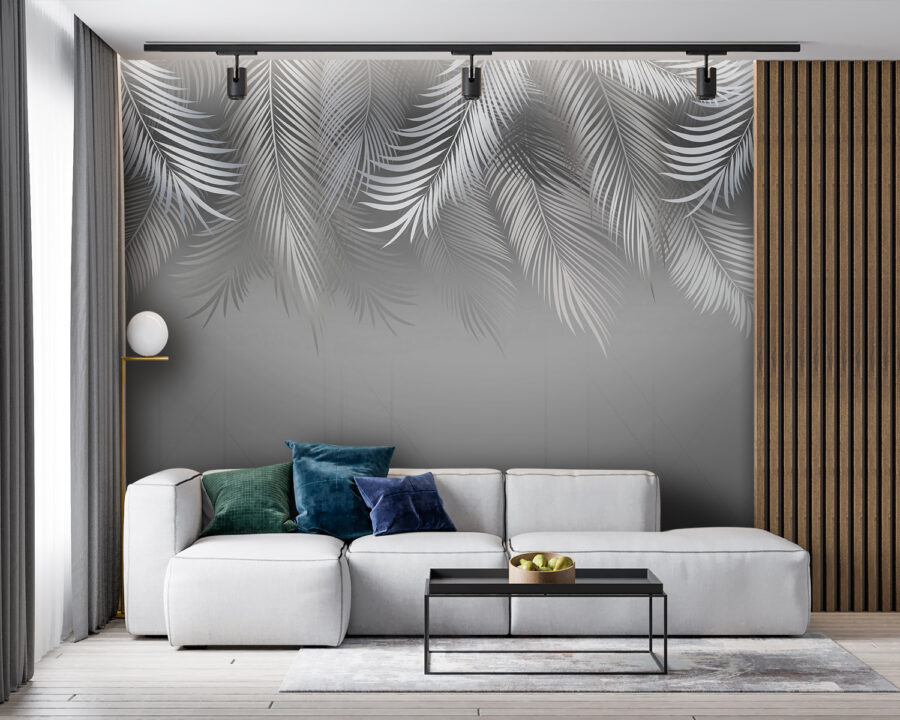 Wyobraź sobie, że wchodzisz do pokoju, w którym ściana szepcze opowieści o tropikalnej bryzie i leniwych, skąpanych w słońcu popołudniach. Ta fototapeta, z wdzięcznymi liśćmi palmowymi na delikatnym szarym tle, wnosi odrobinę raju do wnętrza. To jak mini-wycieczka prosto do domu. Wystarczy pomyśleć o zwinięciu się w kłębek z książką lub popijając filiżankę kawy, a wszystko to w otoczeniu tych delikatnych liści. Jest również wszechstronny – idealny do spokojnej sypialni, stylowego salonu lub przytulnego kącika, w którym płynie kreatywność. Odrobina natury i dużo spokoju, a wszystko to opakowane w oszałamiający design. Któż nie poczułby się tu zrelaksowany?