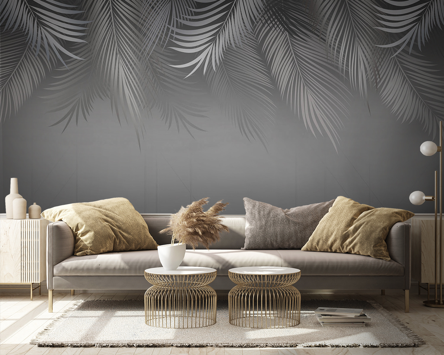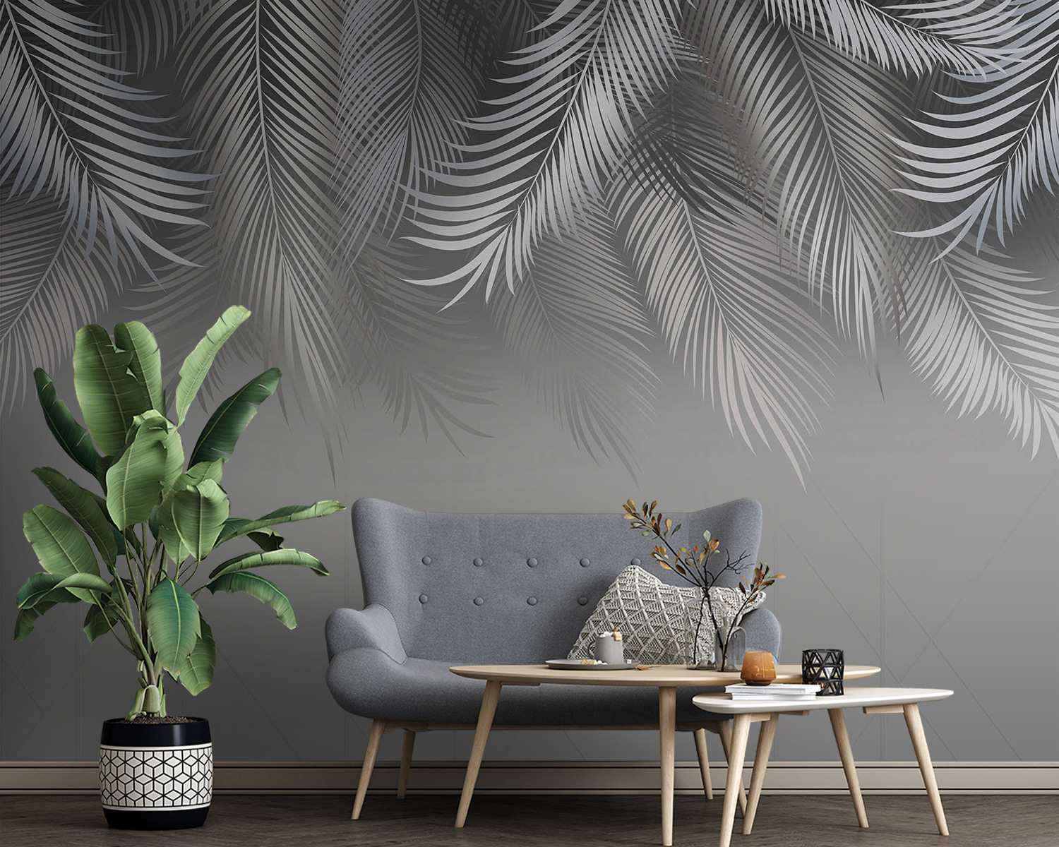 Wyobraź sobie, że wchodzisz do pokoju, w którym ściana szepcze opowieści o tropikalnej bryzie i leniwych, skąpanych w słońcu popołudniach. Ta fototapeta, z wdzięcznymi liśćmi palmowymi na delikatnym szarym tle, wnosi odrobinę raju do wnętrza. To jak mini-wycieczka prosto do domu. Wystarczy pomyśleć o zwinięciu się w kłębek z książką lub popijając filiżankę kawy, a wszystko to w otoczeniu tych delikatnych liści. Jest również wszechstronny – idealny do spokojnej sypialni, stylowego salonu lub przytulnego kącika, w którym płynie kreatywność. Odrobina natury i dużo spokoju, a wszystko to opakowane w oszałamiający design. Któż nie poczułby się tu zrelaksowany?