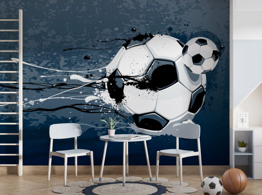 Wyrzuć nudę na krawężnik dzięki tej niesamowitej fototapecie! “Piłka nożna rozpryskuje się w akcji” oddaje radosny pęd gry, dzięki czemu idealnie nadaje się do pokoju każdego młodego sportowca. Wyobraź sobie swojego malucha budzącego się w tej tętniącej życiem scenerii, gotowego zasznurować swoje trampki. Jest zabawny, energiczny i dodaje zabawnego klimatu, ale nie jest zbyt przesadzony. Pomyśl o wszystkich wyimaginowanych meczach, które mogłyby rozgrywać się na tym odważnym tle – pozwól kreatywności płynąć! Ponadto może to zainspirować przyszłą gwiazdę piłki nożnej lub przynajmniej wywołać kilka ożywionych debat na temat najlepszych drużyn. Któż nie kocha muralu, który może wywołać uśmiech na twarzach wszystkich?