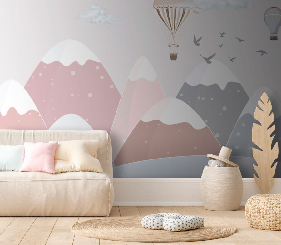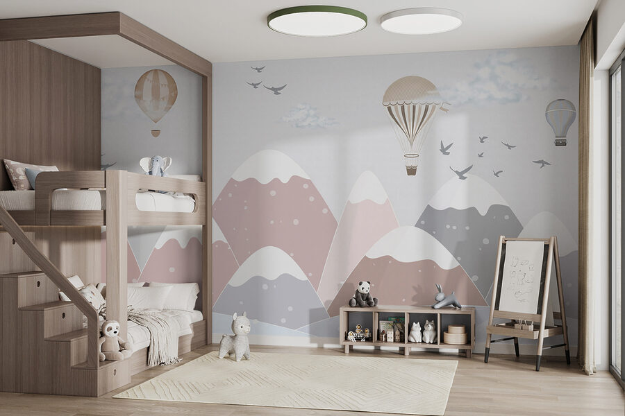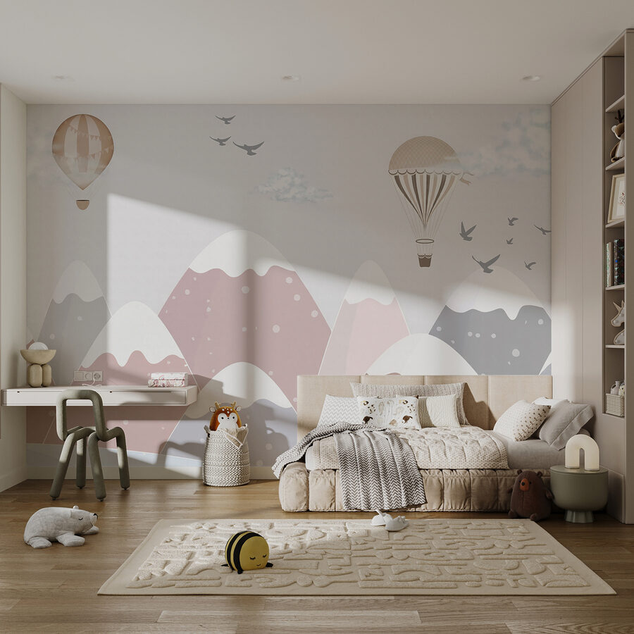 Wyobrażasz sobie bajki na dobranoc pod tym muralem? Opowieści o podróżach balonem nad górami. Ma ten ponadczasowy, klasyczny wygląd, ale z delikatnym, nowoczesnym akcentem. Nie bez powodu fototapeta ta znajduje się na liście “Popularnych fototapet”. Po prostu rozświetla przestrzeń urokiem i ciepłem.