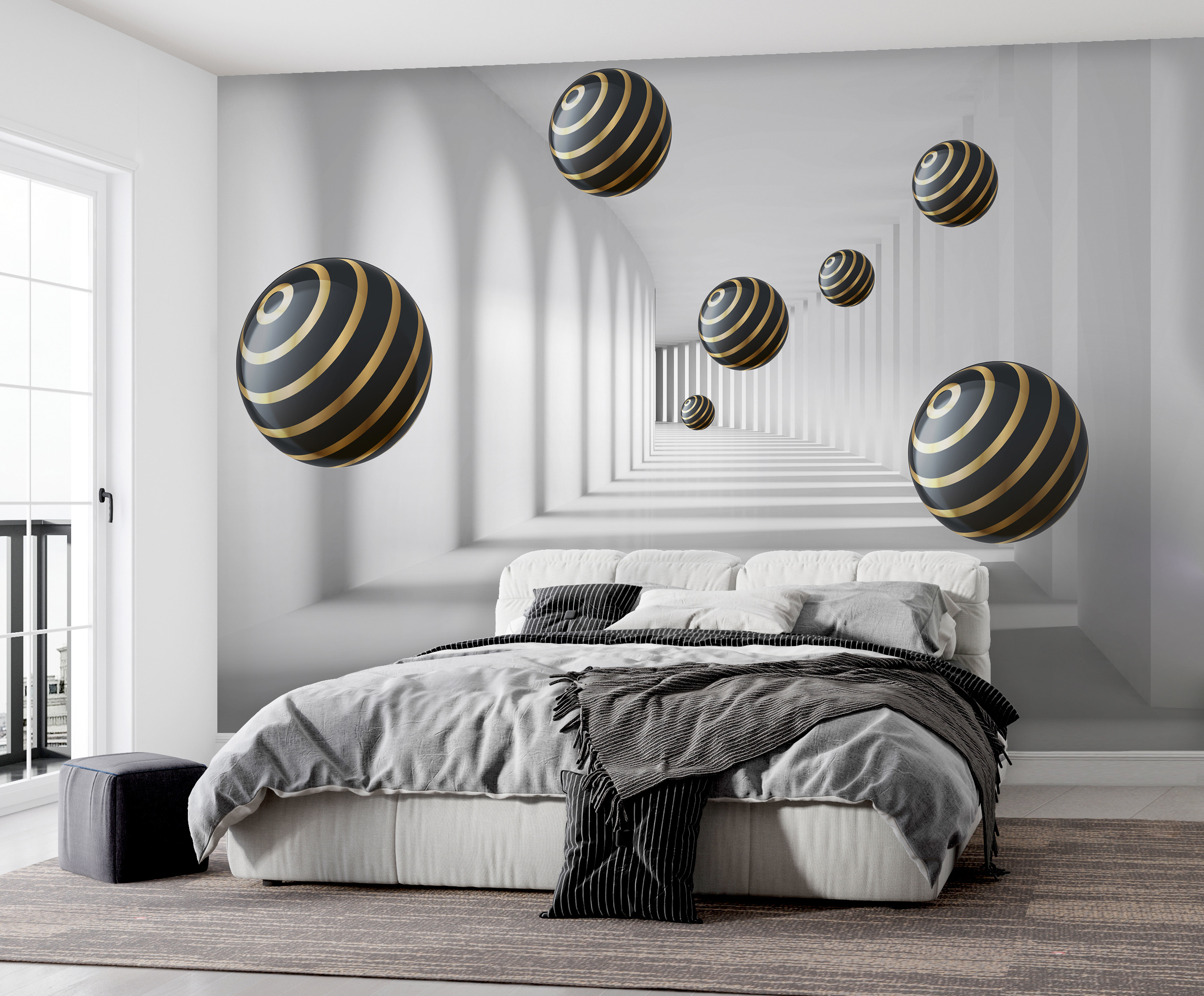 Wyobraź sobie, że wchodzisz do pokoju i czujesz się jak w innym wymiarze. Dokładnie to robi fototapeta “Fototapeta Striped Spheres Hover in White Corridor”. To nowoczesny, niemal hipnotyzujący design, który sprawia, że czujesz się jak w futurystycznym tunelu. Sfery z eleganckimi paskami wydają się unosić bez wysiłku, tworząc poczucie głębi, które może sprawić, że przestrzeń będzie wydawać się większa. To trochę tak, jakby mieć swój własny mały film science-fiction na ścianie!