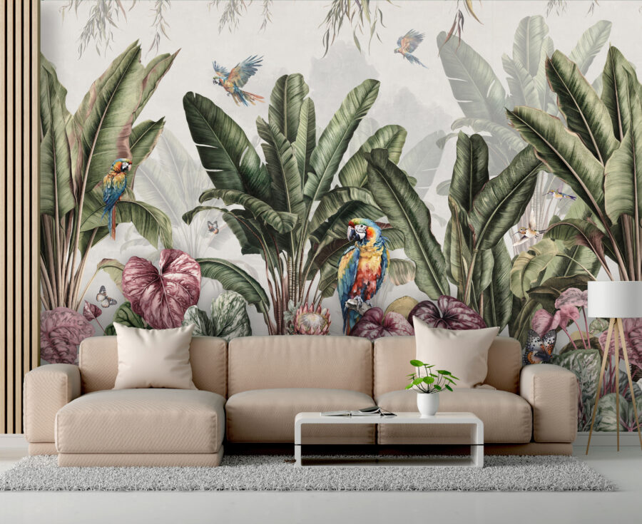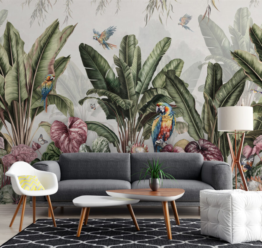 Wyobraź sobie, że wchodzisz do pokoju i natychmiast przenosisz się do bujnego raju. Dokładnie to dzieje się z fototapetą “Tropical Paradise with Colorful Parrots”. Żywe papugi, egzotyczne rośliny i motyle, które niemal fruwają tuż przy ścianie – to jak mini-wakacje bez pakowania torby! Niezależnie od tego, czy chcesz rozjaśnić zmęczoną przestrzeń, czy wprowadzić odrobinę kaprysu do codzienności, ta fototapeta jest dla ciebie. Idealna na deszczowe dni, kiedy odrobina koloru i natury jest tym, czego potrzebuje lekarz. Pomyśl o tym jak o swoim własnym kawałku raju w domu.