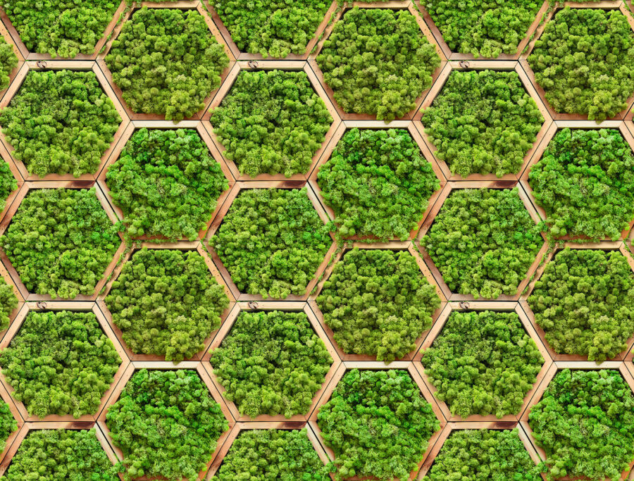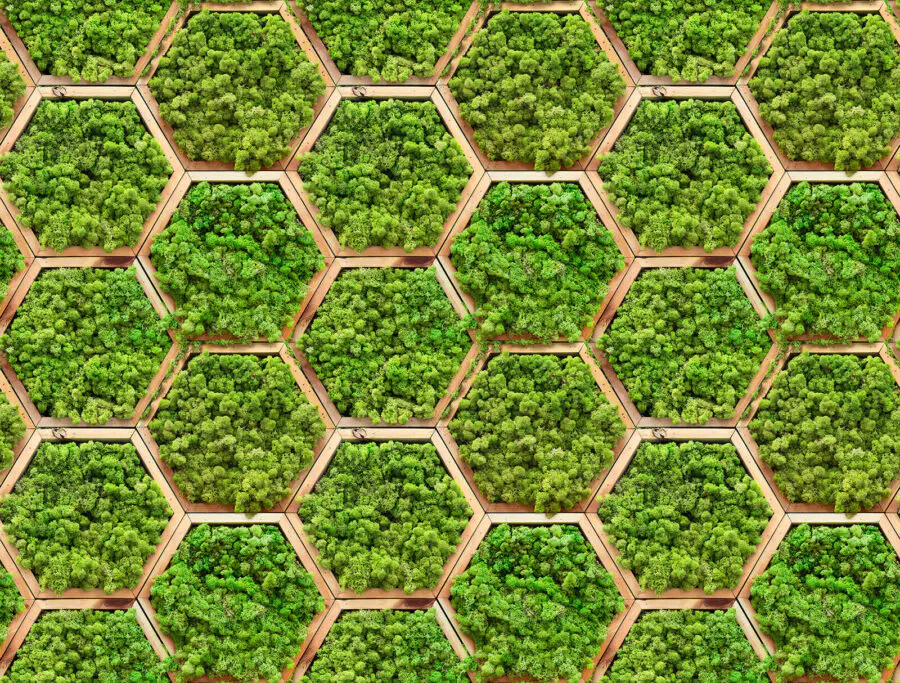 Odmień swoją przestrzeń dzięki tej oszałamiającej fototapecie ściennej z zachwycającym wzorem roślin umieszczonych w uroczych sześciokątach. Wyobraź sobie, że wchodzisz do przytulnego kącika, w którym czujesz się jak w spokojnym ogrodzie – pełnym bujnej zieleni bez konieczności konserwacji. To jak przeniesienie się na zewnątrz, ale bez robaków i brudu.