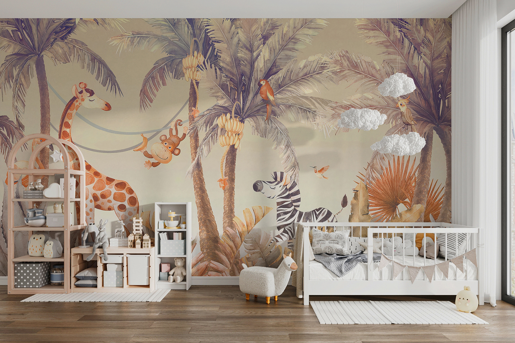 Wyobraź sobie, że wchodzisz do pokoju i wita cię impreza w dżungli! Ta fototapeta ścienna z żywą ekipą zwierząt wygrzewających się na słońcu wniesie poczucie przygody do twojego domu. Wesoła małpka huśta się na hamaku obok przyjaznej żyrafy, podczas gdy zebra i flaming dodają do zabawy. To tak, jakby dżungla postanowiła urządzić małe święto słońca, a ty jesteś zaproszony! Ta fototapeta jest idealna do pokoju dziecięcego – pomyśl tylko o iskierce w ich oczach i pomysłowych historiach, które mogą się rozwinąć. To coś więcej niż tylko dekoracja; to bilet do zabawnej przygody każdego dnia. Odrobina koloru, szczypta kaprysu i całe mnóstwo radości czekają!