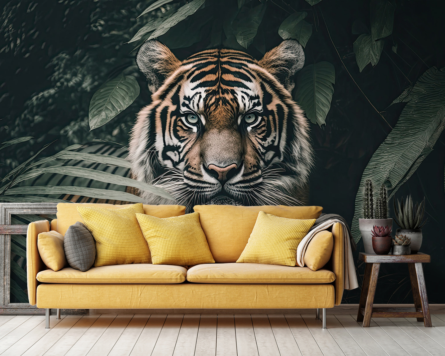 Odmień swoją przestrzeń dzięki tej oszałamiającej fototapecie przedstawiającej tygrysa wyglądającego przez bujne liście dżungli. To jak dzika przygoda w domu! Wyobraź sobie, że wchodzisz do pokoju, w którym to majestatyczne stworzenie wydaje się nad tobą czuwać, wywołując poczucie zachwytu i dreszczyk emocji. Głęboka zieleń i uderzający pomarańcz sprawiają, że jest to idealne rozwiązanie na każdą ścianę – zamieniając przyziemną przestrzeń w egzotyczną oazę. Wyobraź sobie przytulne wieczory, popijając herbatę i czując się, jakbyś znalazł się w objęciach natury. Ta fototapeta nie tylko dekoruje; opowiada historię, zapraszając każdego odwiedzającego do zatrzymania się i pochłonięcia jej. Idealna dla tych, którzy uwielbiają uciekać od codzienności!