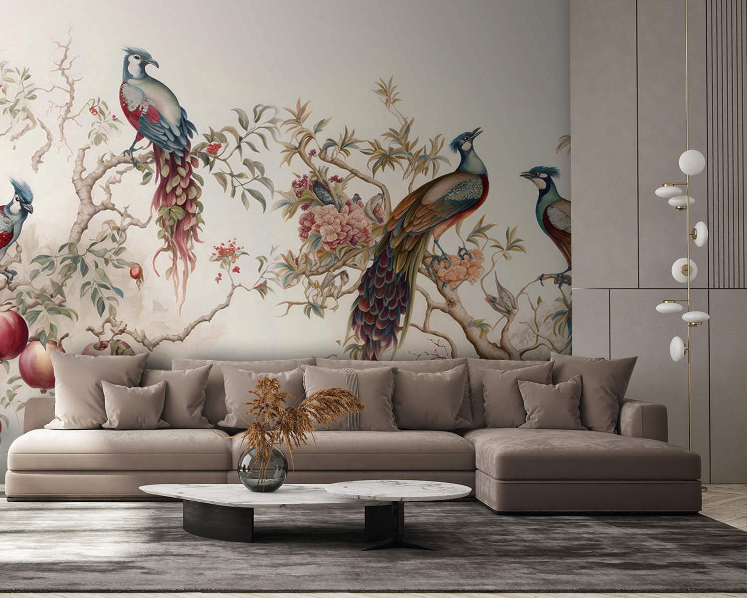 Odmień swoją przestrzeń dzięki tej oszałamiającej fototapecie ściennej przedstawiającej żywe pawie siedzące z gracją na bujnych drzewach. Wyobraź sobie, że wchodzisz do kapryśnego ogrodu za każdym razem, gdy wchodzisz do pokoju. Uderzające kolory i misterne detale dodają odrobinę osobowości, sprawiając, że jest to coś więcej niż tylko dekoracja – to początek rozmowy. Znajomi mogą zapytać, czy potajemnie pielęgnujesz zielony kciuk lub odkrywasz świat artystyczny. Wyobraź sobie przytulne wieczory z miękkim światłem odbijającym się od fototapety, zachęcającym do relaksu i inspiracji. To prawie tak, jakby pawie czekały, by dołączyć do kolejnej przygody. Kto nie chciałby mieszkać wśród takiego piękna?