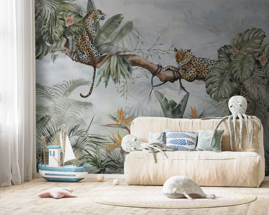 Odmień swoją przestrzeń dzięki tej czarującej fototapecie przedstawiającej lamparta w bujnej dżungli. Wyobraź sobie przytulny kącik, w którym dzieci mogą puścić wodze fantazji – czy to pełne przygód opowieści o odkrywcach dżungli, czy spokojne popołudnia z książką. Te figlarne lamparty siedzące na liściastych drzewach rozbudzą ciekawość i zdumienie. Żywa zieleń i kolorowe kwiaty tworzą radosne tło, które sprawia wrażenie świeżego i żywego. Idealnie nadaje się do dodania odrobiny natury do wnętrza, sprawiając, że każde spojrzenie staje się mini ucieczką. Odetchnij więc atmosferą dżungli i zacznij zabawę!