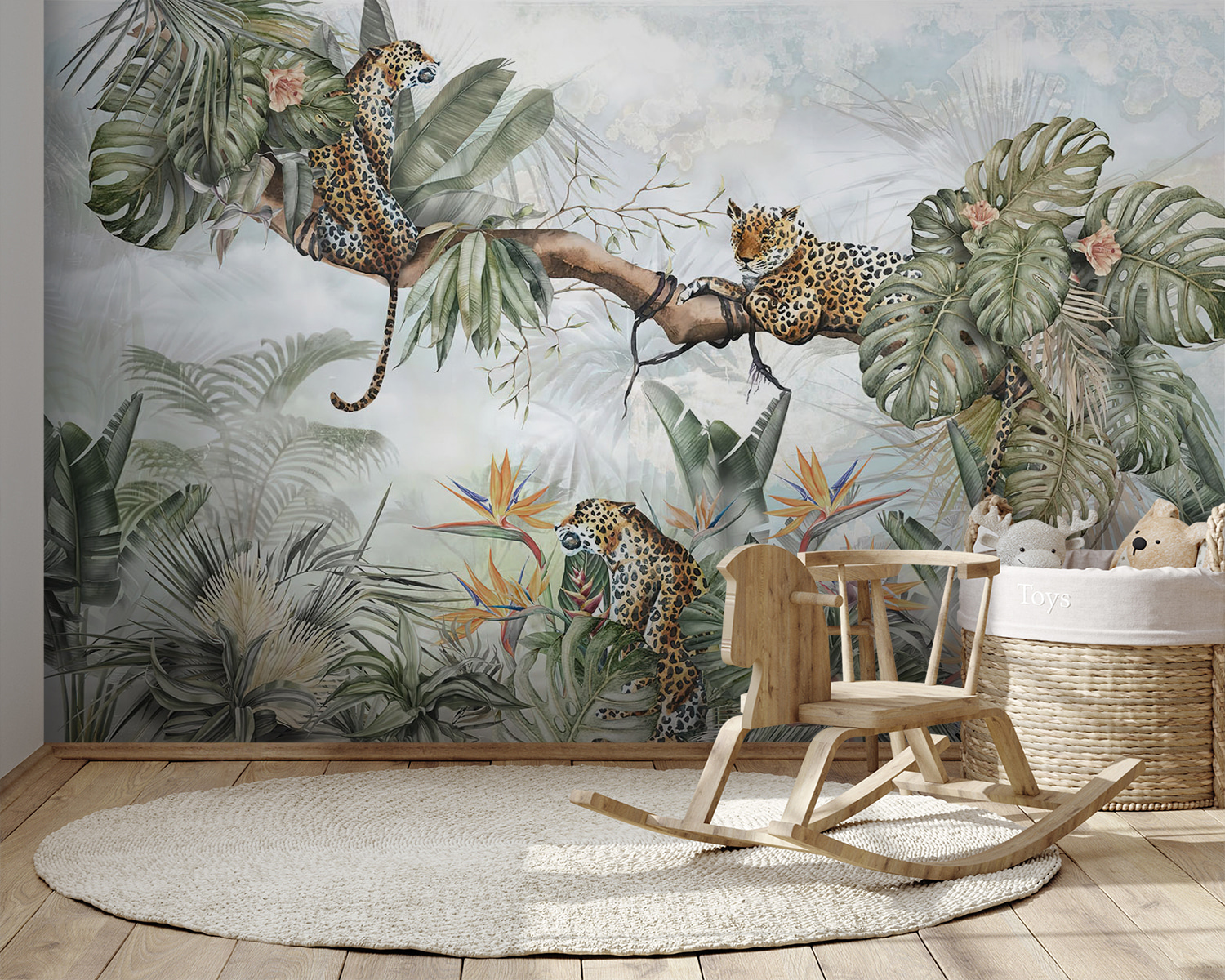 Odmień swoją przestrzeń dzięki tej czarującej fototapecie przedstawiającej lamparta w bujnej dżungli. Wyobraź sobie przytulny kącik, w którym dzieci mogą puścić wodze fantazji – czy to pełne przygód opowieści o odkrywcach dżungli, czy spokojne popołudnia z książką. Te figlarne lamparty siedzące na liściastych drzewach rozbudzą ciekawość i zdumienie. Żywa zieleń i kolorowe kwiaty tworzą radosne tło, które sprawia wrażenie świeżego i żywego. Idealnie nadaje się do dodania odrobiny natury do wnętrza, sprawiając, że każde spojrzenie staje się mini ucieczką. Odetchnij więc atmosferą dżungli i zacznij zabawę!
