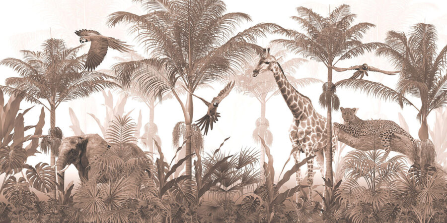 Przekształć każde pomieszczenie w dziki azyl dzięki tej czarującej fototapecie ściennej przedstawiającej żyrafę i ptaka bawiących się pośród bujnego lasu. To jak mini safari w domu, gdzie każde spojrzenie wywołuje odrobinę radości. Wyobraź sobie dzieci chichoczące, gdy dostrzegają każde zwierzę ukrywające się w liściach lub przytulne wieczory spędzone na opowiadaniu przygód w dżungli. Ziemiste odcienie tworzą uspokajającą atmosferę, idealną do pokoju dziecięcego lub pokoju zabaw. Ta fototapeta to nie tylko dekoracja – to drzwi do wyobraźni, wprowadzające cud natury do wnętrza. Kto nie chciałby poczuć się jak podczas codziennej przygody w dżungli?
