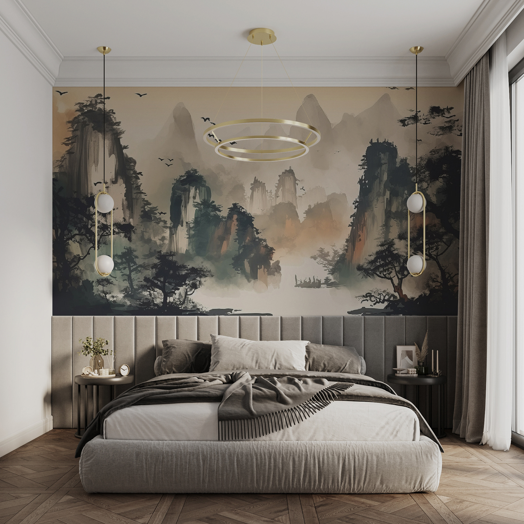 Wyobraź sobie, że wchodzisz do przytulnego pokoju, w którym wita cię ta czarująca fototapeta “Malowidła ścienne drzew i gór”. To jak wejście do spokojnego krajobrazu, w którym mgliste góry i szepczące drzewa stają się codzienną ucieczką. Idealna do salonu, a nawet spokojnej przestrzeni do medytacji – kto nie chciałby odrobiny natury we wnętrzu? Miękkie, mgliste odcienie tworzą uspokajającą atmosferę, prawie tak, jakby góry przytulały się do twojego pokoju. A przelatujące ptaki sprawiają wrażenie delikatnej bryzy. Przyjaciele wpadają z wizytą? Będą zachwyceni, prawdopodobnie wyobrażając sobie, że są na wędrówce przez spokojny, mistyczny las – bez obolałych stóp. Ta fototapeta sprawia, że ściana nie jest tylko ścianą, ale podróżą. Więc śmiało, pozwól swojemu domowi opowiedzieć historię, jedną oszałamiającą scenę na raz.
