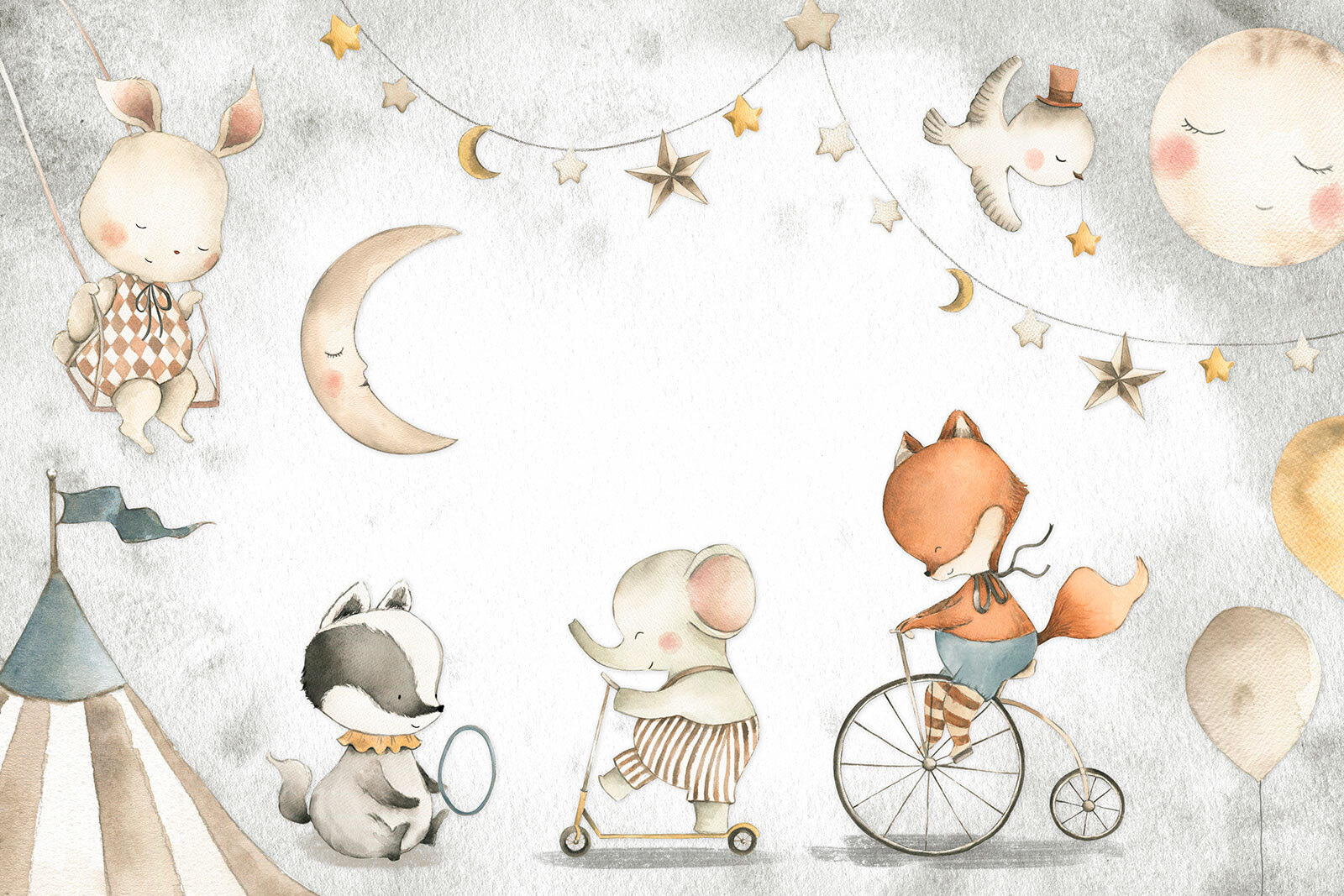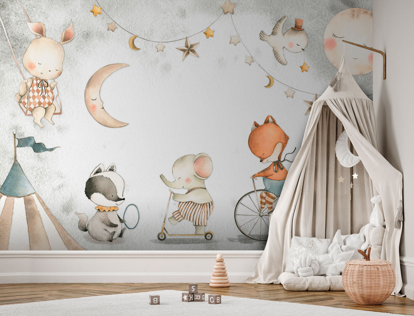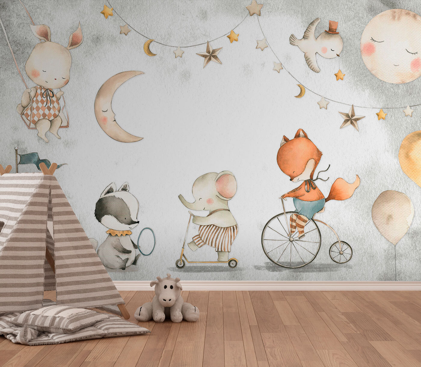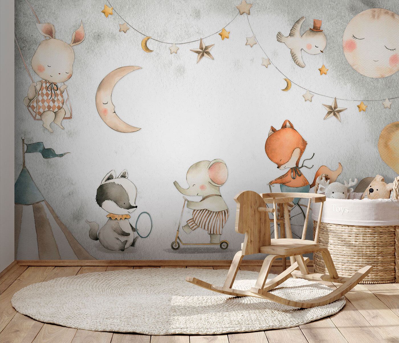 Przekształć pokój swojego dziecka w kapryśną krainę czarów dzięki fototapecie ściennej “Playful Animals at the Circus Carnival”. Ta czarująca grafika przeniesie cię do przytulnego, sennego karnawału, gdzie urocze zwierzęta bawią się pod rozgwieżdżonym niebem. Idealna do dodania odrobiny magii do sypialni lub placów zabaw, przedstawia słodkiego króliczka, figlarnego lisa i innych uroczych przyjaciół bawiących się na różnych przejażdżkach karnawałowych. Z przyjemnością będziesz obserwować, jak twarz Twojego malucha rozjaśnia się, gdy odkrywa zachwycające sceny. To nie tylko dekoracja ścienna; to codzienna dawka radości. Wyobraź sobie bajki na dobranoc na tym tle – czysta magia!