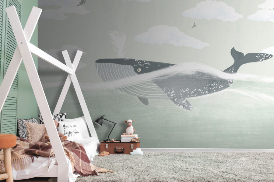 Wyobraź sobie świat, w którym gigantyczny wieloryb spokojnie pływa po miękkich falach w morzu pastelowych chmur – jakie to fajne! Fototapeta ścienna “Cień ptaka” jest jak senna ucieczka do pokoju malucha, przytulnego kącika do czytania lub jakiejkolwiek innej przestrzeni, w której przydałoby się trochę kaprysu. Znajduje się ona zarówno w kategorii fototapet dziecięcych, jak i popularnych, i jest osobistym faworytem (zaufaj mi, ten jest do zatrzymania). Wyobraź sobie: Twoje dziecko budzi się każdego ranka w tej magicznej scenerii – czystego zachwytu i spokoju. Stonowane kolory i delikatne linie są kojące, idealne do nadania spokojnego tonu. To prawie tak, jakby sam pokój dawał ci delikatny uścisk. Fantastyczny akcent pobudzający wyobraźnię i dodający artystycznego klimatu bez bycia zbyt głośnym. Poza tym, fajnie jest mieć wieloryba jako kumpla w pokoju, prawda?