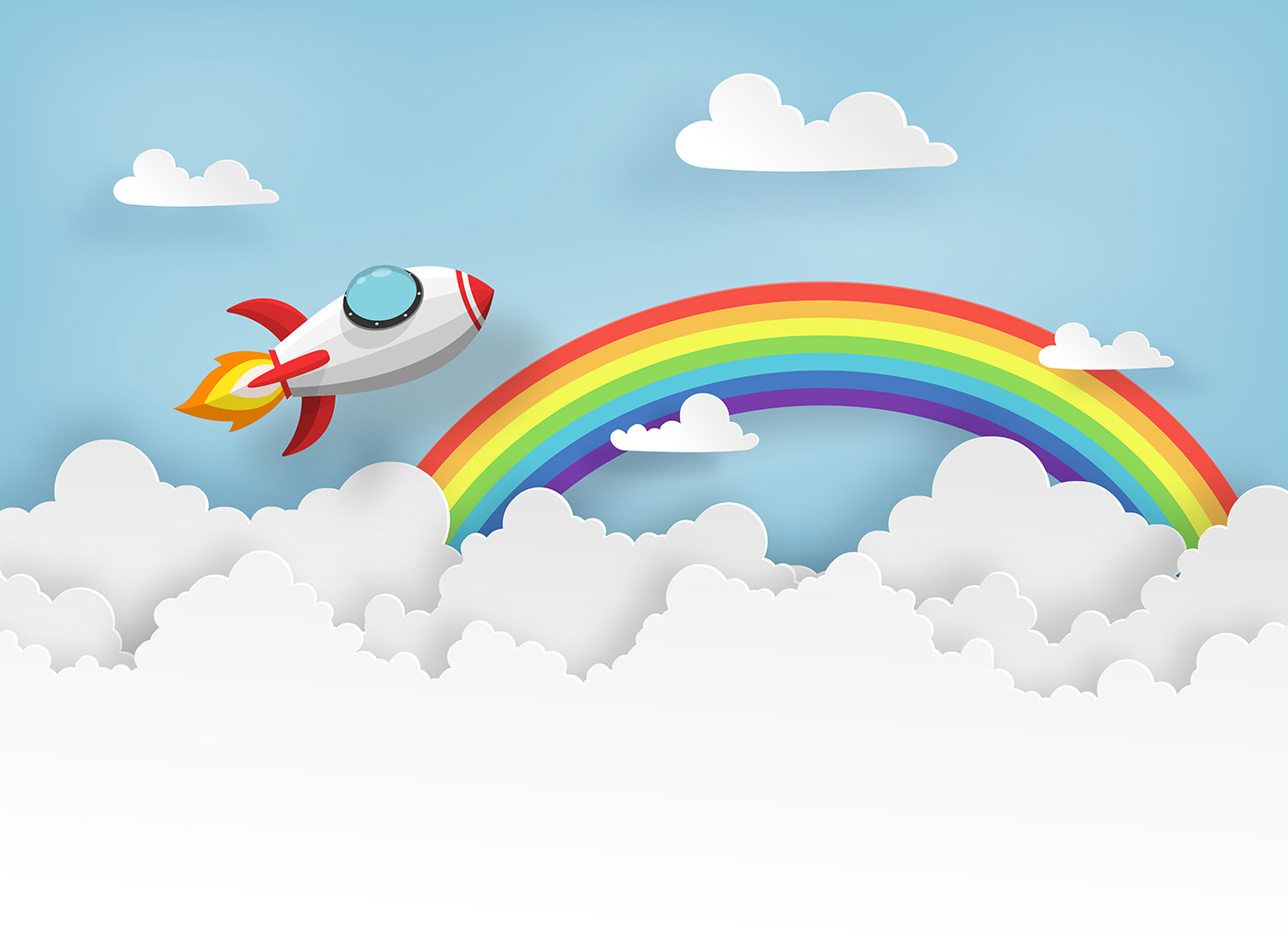 Rozjaśnij przestrzeń swojego malucha dzięki tej kapryśnej fototapecie przedstawiającej wesołą rakietę szybującą przez puszyste chmury, pod oszałamiającą tęczą. To jak brama do przygody bezpośrednio na ścianie! Wyobraź sobie przytulne bajki na dobranoc wypełnione odważnymi astronautami i tęczowymi pościgami. Ta fototapeta to nie tylko dekoracja – to zaproszenie do snucia wielkich marzeń i wyobrażania sobie fantastycznych podróży. Delikatne kolory tworzą uspokajającą atmosferę, idealną do pokoju dziecięcego lub pokoju zabaw. To słodkie miejsce, w którym spotykają się wyobraźnia i radość. Przekształć pokój ze zwykłego w niezwykły!