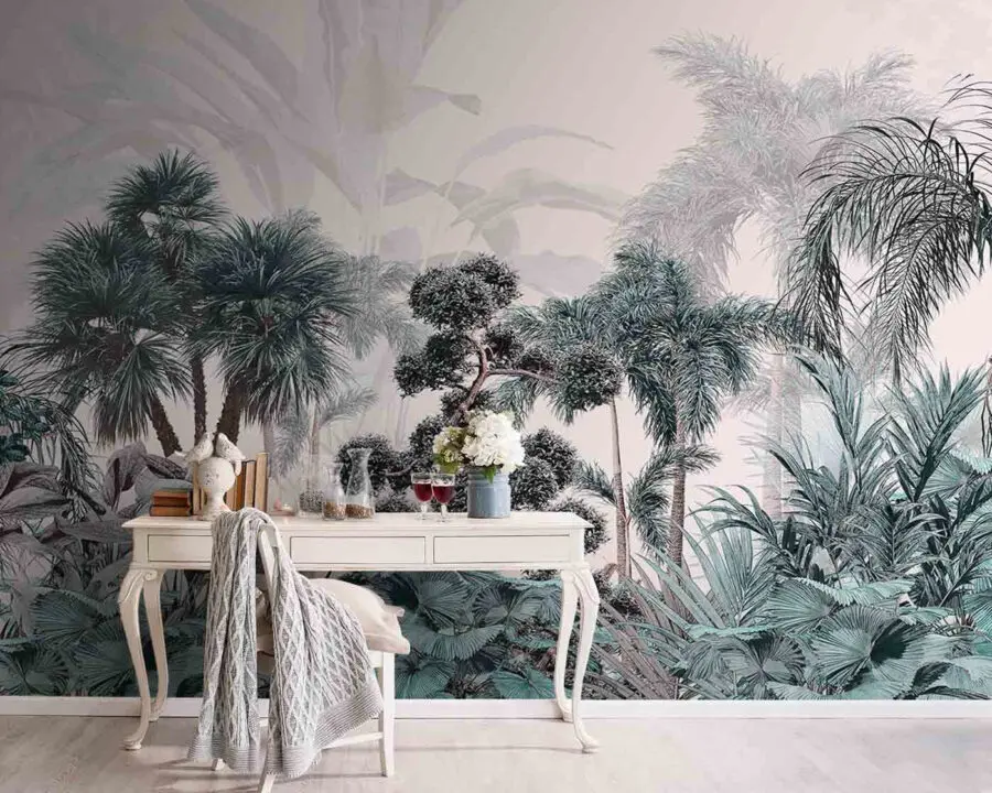 Przekształć dowolną przestrzeń w bujny, tropikalny raj dzięki tej oszałamiającej fototapecie ściennej “Tropical Paradise with Lush Greenery”. Poczujesz się jak w gęstej dżungli za każdym razem, gdy wejdziesz do pokoju. Wyobraź sobie relaks po długim dniu w otoczeniu spokojnej zieleni i strzelistych palm – to jak twój własny azyl.