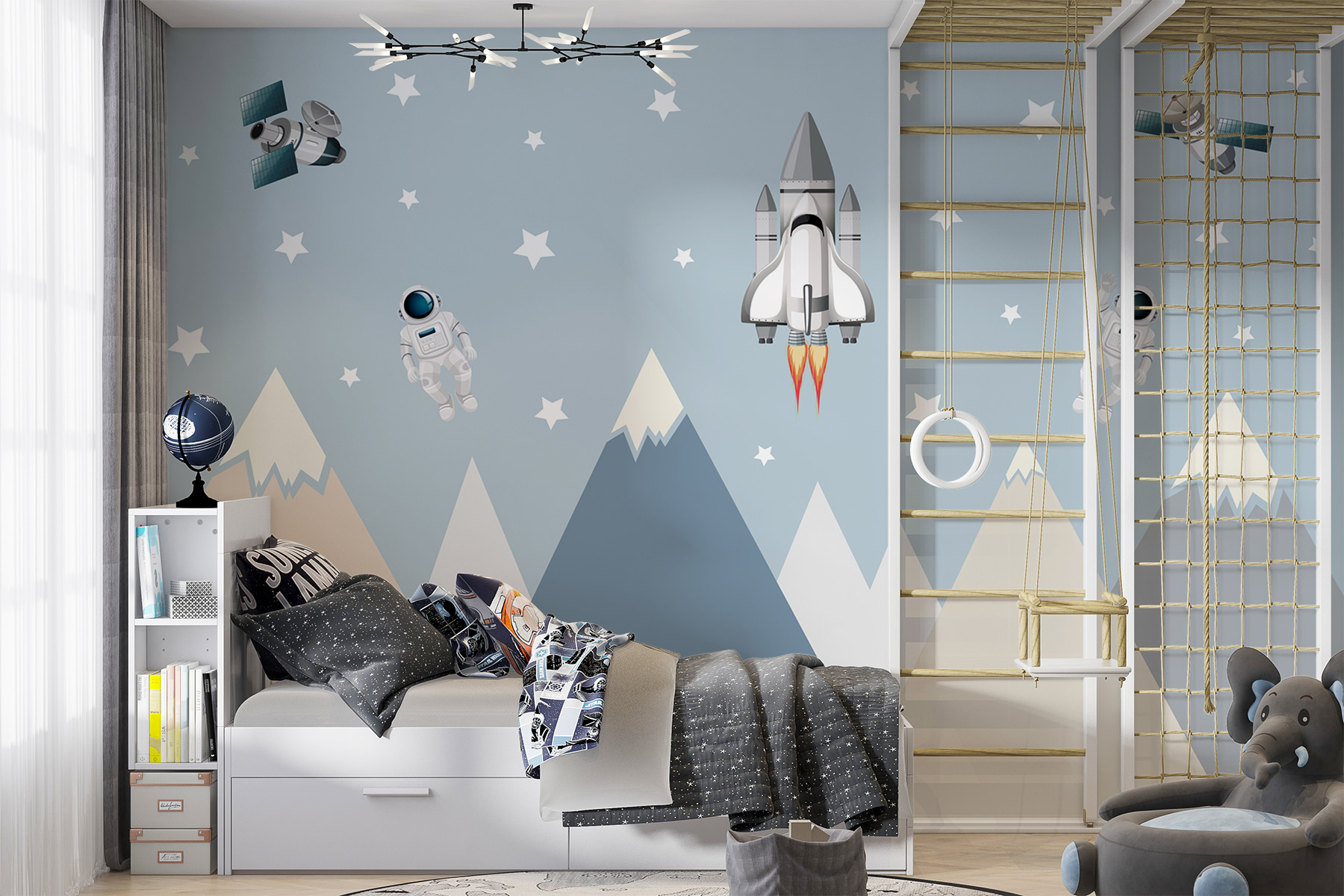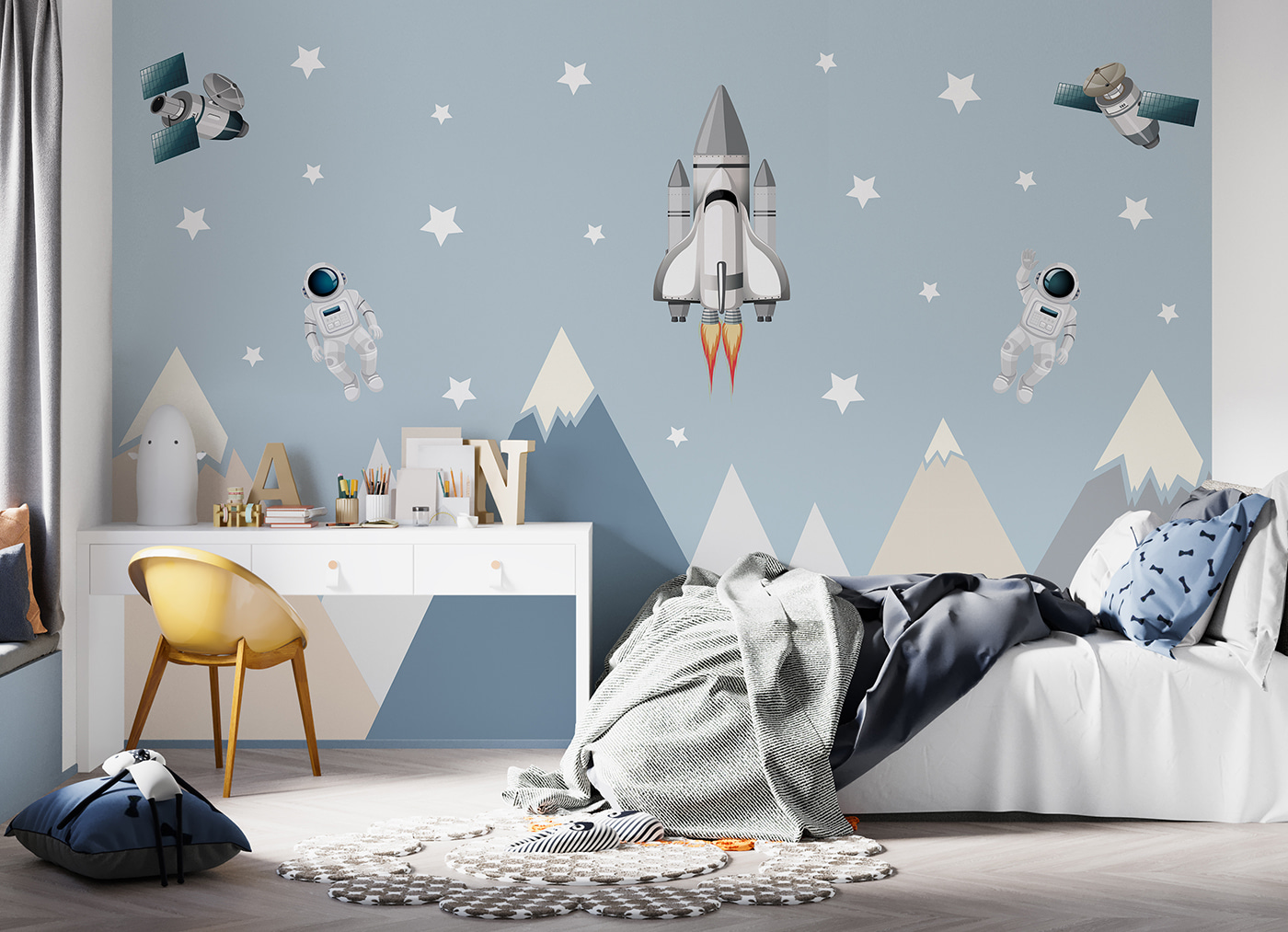 Idealna do pokoju dziecięcego lub pokoju zabaw, ta fototapeta o zabawnym designie dodaje odrobinę cudowności i kaprysu. Wyobraź to sobie – każdego dnia twoje dziecko może wyruszyć w fantastyczne podróże, spotykając odważnych astronautów i odkrywając odległe galaktyki. To nie tylko mural; to portal do niekończącej się zabawy z wyobraźnią. A te miękkie górskie szczyty? Dodają łagodnego, ugruntowanego charakteru całej scenie. Szczerze mówiąc, to czysta magia.
