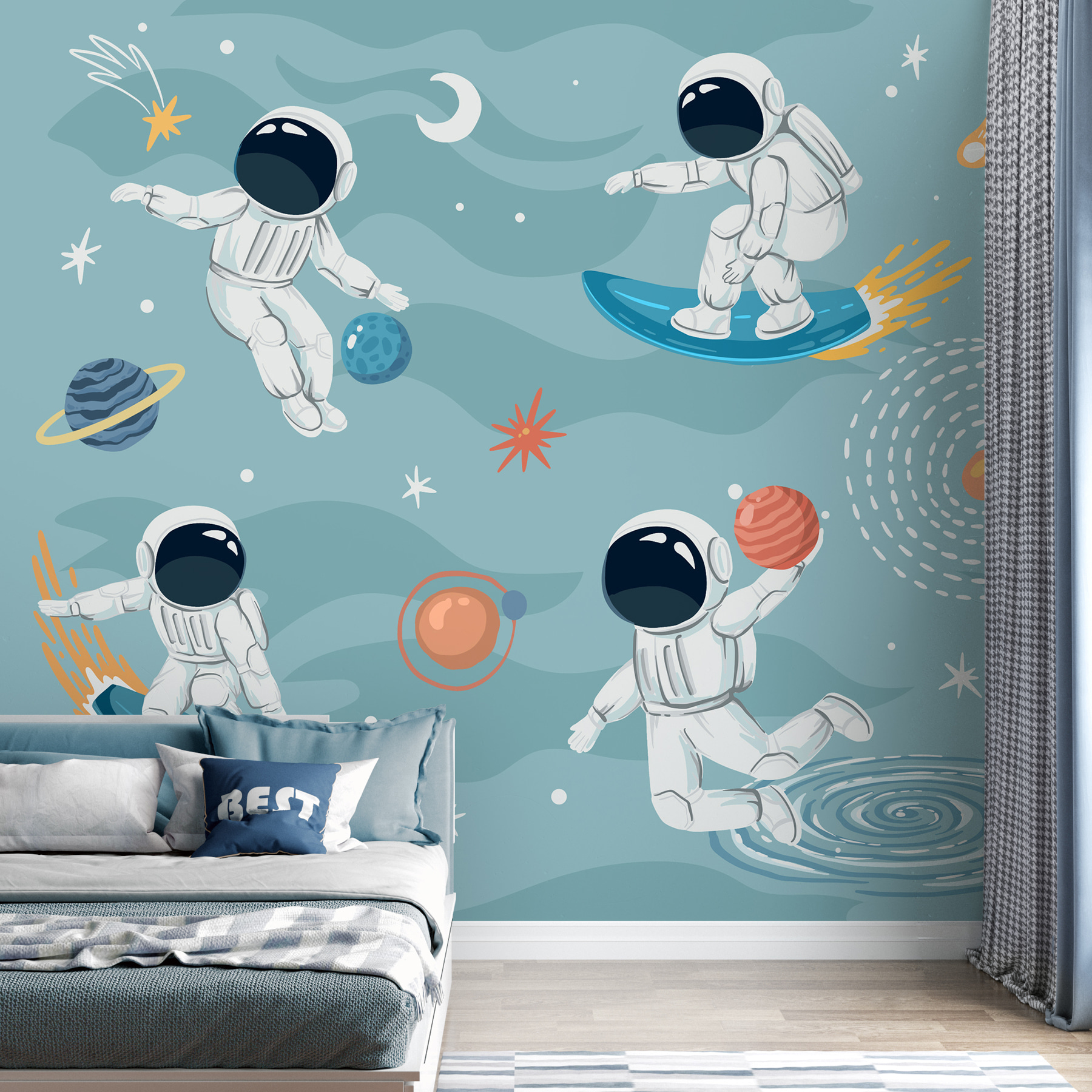 Wyobraź sobie przekształcenie pokoju dziecka w kosmiczny plac zabaw dzięki tej niesamowitej fototapecie. “Cartoon of an Astronaut on a Surfboard” zabierze cię na szaloną przejażdżkę w kosmosie – to jak uderzenie w galaktyczne fale prosto ze ściany. Idealna do pobudzenia wyobraźni dziecka lub dodania dziwacznego akcentu do pokoju zabaw. Ma wszystkie elementy – planety, gwiazdy, a nawet trochę komet. Wyobrażasz sobie bajki na dobranoc? Marzenie o przygodach na Drodze Mlecznej, jazda na spadających gwiazdach. Jest żywy, zabawny i nieco odjechany – tak jak powinno wyglądać dzieciństwo. Sprawia, że każda przestrzeń staje się kosmiczna!