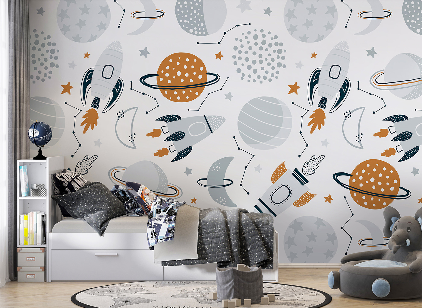 Rodzice uwielbiają ją za rozbudzanie ciekawości na temat wszechświata, a dzieci uwielbiają ją za jej zabawny klimat. Ponadto jest łatwy w aplikacji, co czyni go doskonałym wyborem do szybkiej transformacji pokoju. Zanurz się w tym zachwycającym wystroju – jest nie z tego świata!