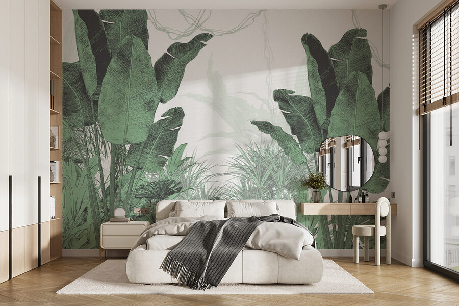Idealna do współczesnych wnętrz lub gdy po prostu potrzebujesz podnieść się na duchu dzięki naturze, z pewnością zachęci do rozmowy. Poza tym, kto nie kocha pokoju, w którym czuje się, że żyje? Idealny do salonów, sypialni, a nawet zwykłej ściany w łazience, którą chciałeś ożywić. Łatwa w montażu i przyjemna dla oka – szybko stanie się twoją ulubioną ścianą. Zanurz się w tym liściastym raju i pozwól, aby Twój wystrój mówił sam za siebie!