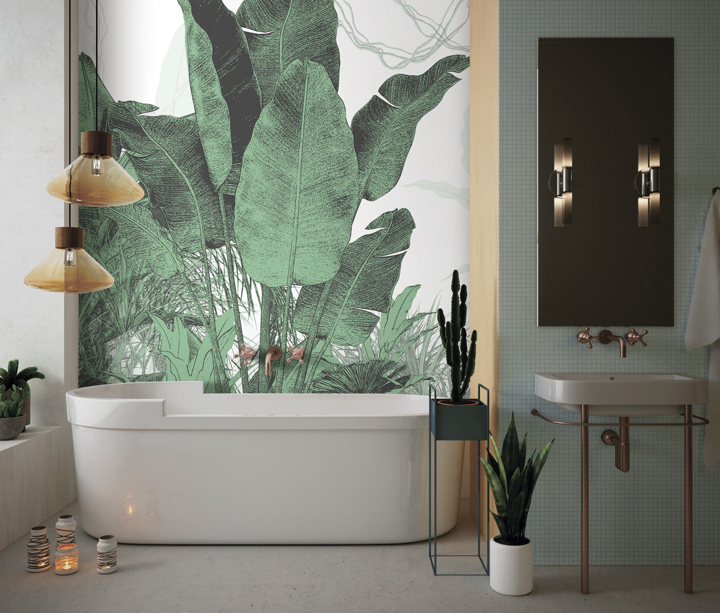 Idealna do współczesnych wnętrz lub gdy po prostu potrzebujesz podnieść się na duchu dzięki naturze, z pewnością zachęci do rozmowy. Poza tym, kto nie kocha pokoju, w którym czuje się, że żyje? Idealny do salonów, sypialni, a nawet zwykłej ściany w łazience, którą chciałeś ożywić. Łatwa w montażu i przyjemna dla oka – szybko stanie się twoją ulubioną ścianą. Zanurz się w tym liściastym raju i pozwól, aby Twój wystrój mówił sam za siebie!