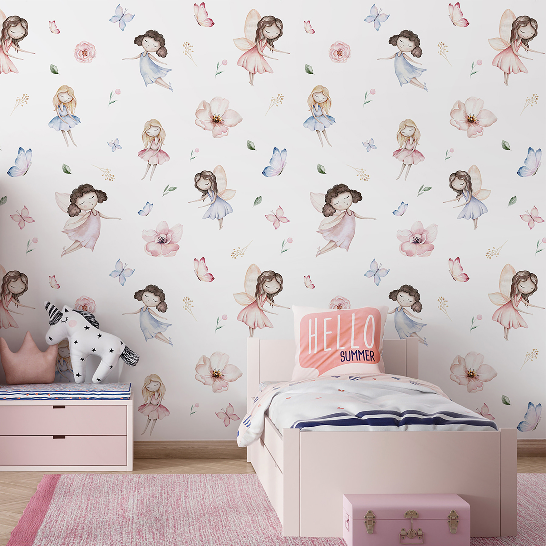 Wyobraź sobie, że wchodzisz do pokoju i wita Cię ten czarujący mural. To jak wejście do kapryśnej bajki, prawda? Ta fototapeta “Rysunek dziewczynki w sukience” jest po prostu pełna uroku i niewinności. Idealna do pokoju twojego malucha, zawiera słodkie ilustracje dziewczynek w uroczych sukienkach, otoczonych trzepoczącymi motylami i delikatnymi kwiatami.