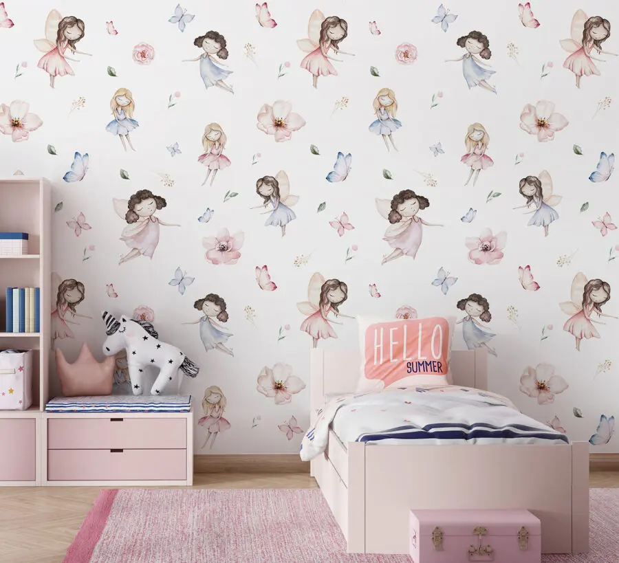 Wyobraź sobie, że wchodzisz do pokoju i wita Cię ten czarujący mural. To jak wejście do kapryśnej bajki, prawda? Ta fototapeta “Rysunek dziewczynki w sukience” jest po prostu pełna uroku i niewinności. Idealna do pokoju twojego malucha, zawiera słodkie ilustracje dziewczynek w uroczych sukienkach, otoczonych trzepoczącymi motylami i delikatnymi kwiatami.