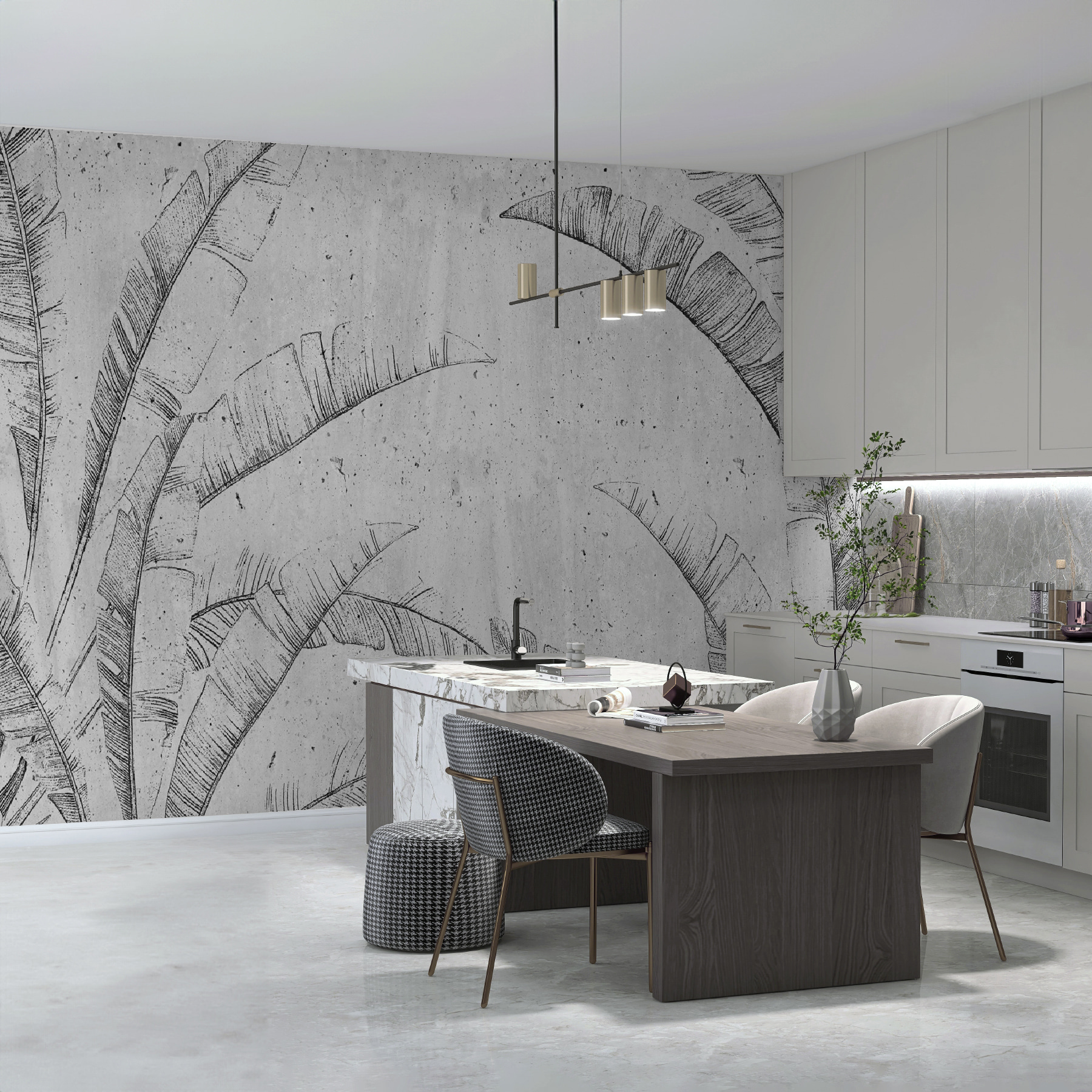 Wyobraź to sobie na swojej ścianie – “Tropikalny wzór liści na betonie”. Fototapeta, która krzyczy zarówno miejskim szykiem, jak i małą oazą w dżungli. Jest to idealne rozwiązanie, jeśli chcesz, aby przestrzeń była przewiewna, a jednocześnie uziemiona. Wyobraź sobie, że popijasz poranną kawę, łapiesz grę światła na tych liniach liści palmowych i czujesz ten chłodny, betonowy klimat. To jak mała egzotyczna ucieczka, ale bez konieczności kupowania biletu lotniczego. Prawie można się spodziewać, że usłyszy się tropikalne ptaki, prawda? Ta fototapeta przyciąga wzrok i jest idealna dla każdego, kto uwielbia połączenie natury i nowoczesnego stylu.