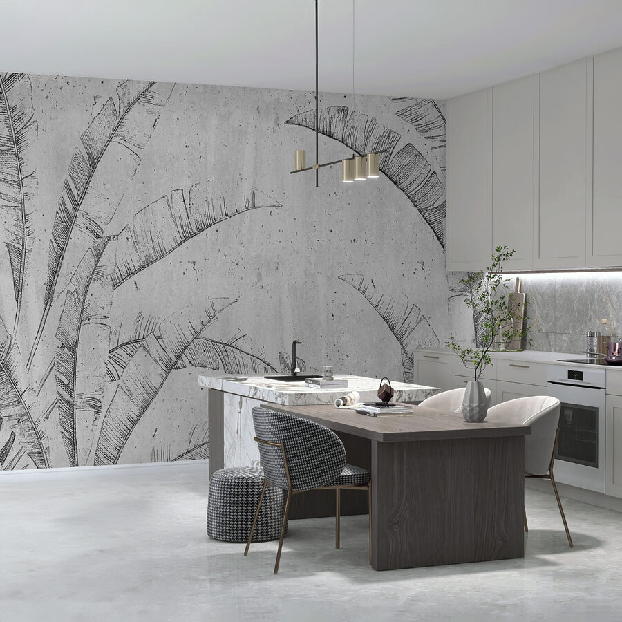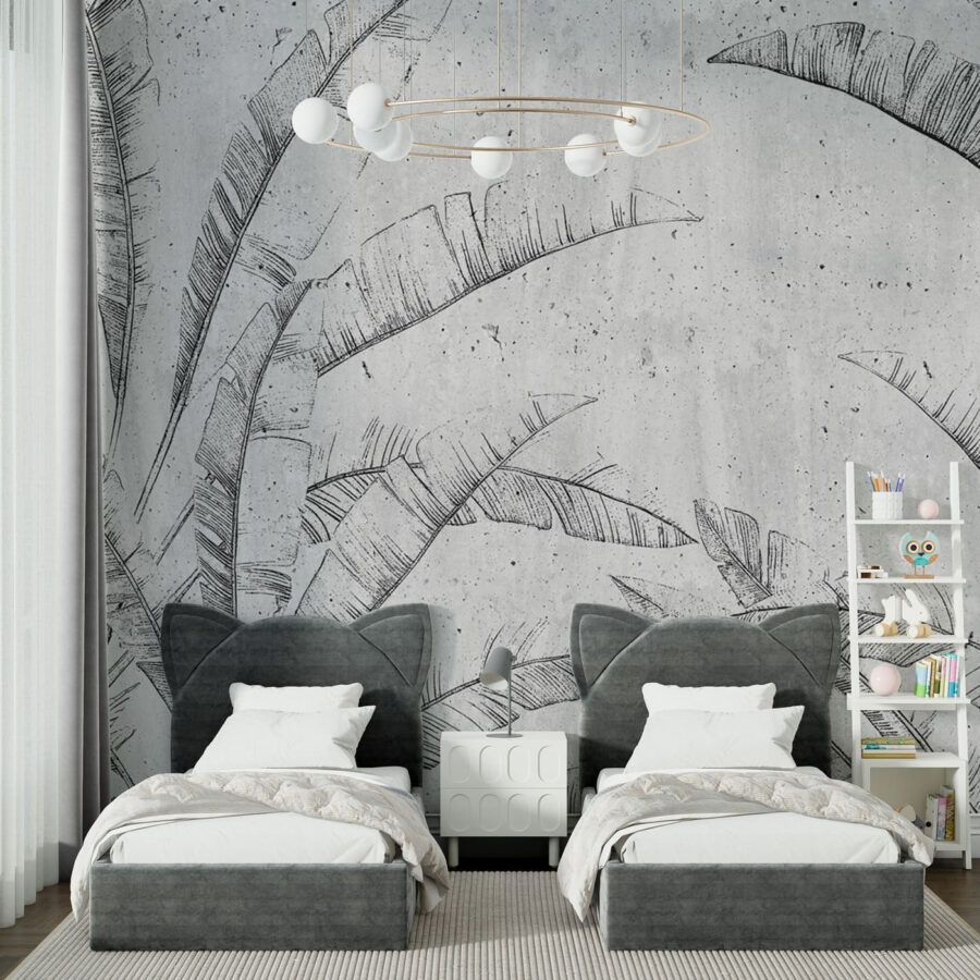 Wyobraź to sobie na swojej ścianie – “Tropikalny wzór liści na betonie”. Fototapeta, która krzyczy zarówno miejskim szykiem, jak i małą oazą w dżungli. Jest to idealne rozwiązanie, jeśli chcesz, aby przestrzeń była przewiewna, a jednocześnie uziemiona. Wyobraź sobie, że popijasz poranną kawę, łapiesz grę światła na tych liniach liści palmowych i czujesz ten chłodny, betonowy klimat. To jak mała egzotyczna ucieczka, ale bez konieczności kupowania biletu lotniczego. Prawie można się spodziewać, że usłyszy się tropikalne ptaki, prawda? Ta fototapeta przyciąga wzrok i jest idealna dla każdego, kto uwielbia połączenie natury i nowoczesnego stylu.