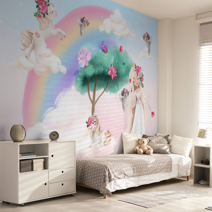 Wyobraź to sobie – wchodzisz do pokoju, w którym jednorożce przechadzają się po puszystych chmurach, a tęcze wdzięcznie wyginają się nad kapryśną sceną. Ta fototapeta ścienna “Jednorożce i tęcze w magicznej scenerii” przekształci każdy pokój dziecięcy w wymarzony raj. Idealna do pokoju dziecięcego, pokoju zabaw lub przestrzeni każdego miłośnika jednorożców, łączy w sobie żywe kolory i elementy fantasy, aby pobudzić wyobraźnię. Wyobraź sobie swojego malucha wpatrującego się w urocze jednorożce, a może nawet marzącego o własnych przygodach. To nie tylko mural – to magiczne doświadczenie każdego dnia! Ponadto jest to świetny sposób na zainspirowanie do opowiadania historii lub uczynienia dobranocki jeszcze bardziej zaczarowaną.
