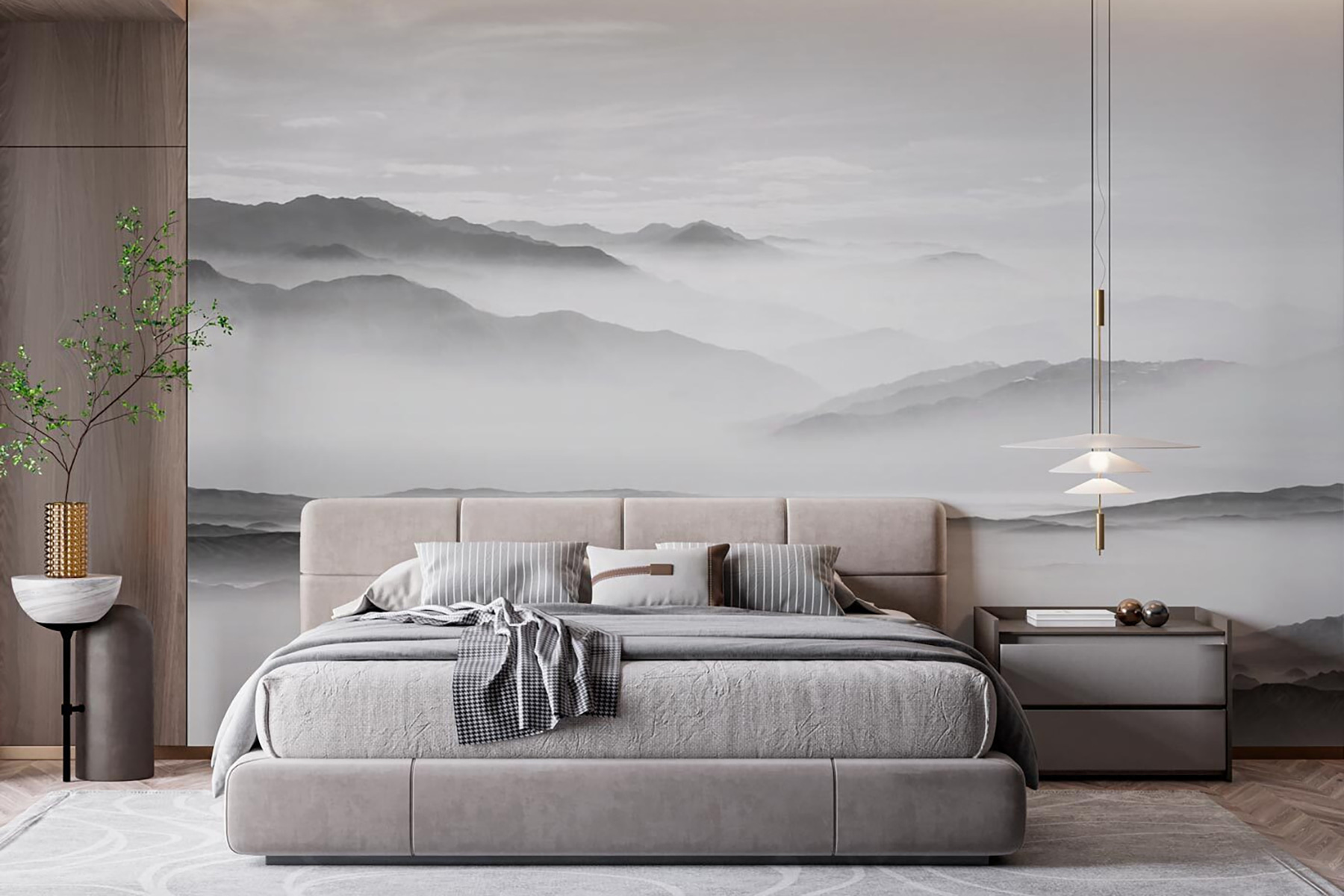 Subtelne odcienie szarości tworzą uspokajającą atmosferę, niemal zapraszając do popijania ciepłej herbaty podczas marzeń za oknem. W jednej chwili jesteś w zgiełku miasta, a w następnej zatracasz się w spokojnej górskiej mgle. To świetny początek rozmowy, a kto nie chciałby podzielić się swoją ścianą z odrobiną magii natury? Ta fototapeta to nie tylko dekoracja; chodzi o stworzenie przestrzeni, która jest jak powiew świeżego powietrza.