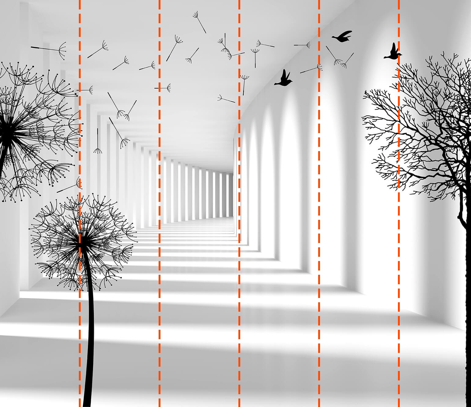 Tapeta zostanie przygotowana zgodnie z wymiarami podanymi w procesie zamawiania. Płótno zostanie podzielone na wygodne sekcje, każda o szerokości do 50 cm.