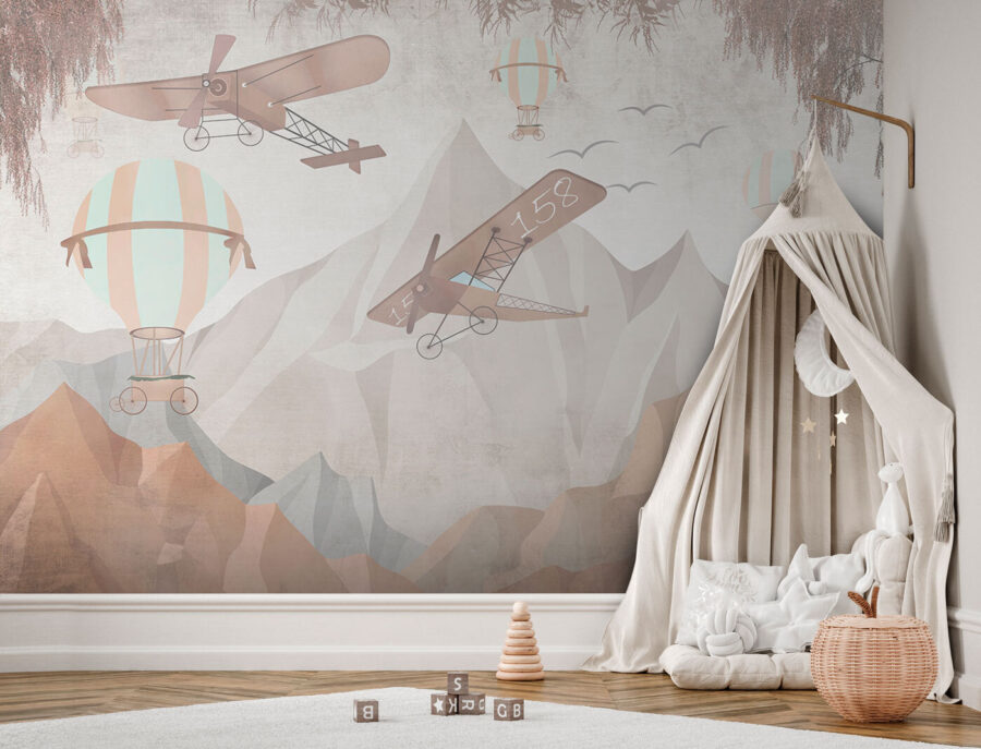 Wyobraź sobie, że budzisz się na widok sennych balonów na ogrzane powietrze delikatnie dryfujących nad górami. Czyż nie jest to po prostu magiczne? Ta fototapeta ścienna “Balon na gorące powietrze z koszykiem” jest jak otwieranie okna na pełne przygód niebo każdego ranka. Idealna do pokoju dziecięcego – lub szczerze mówiąc, do każdej przestrzeni pragnącej odrobiny kaprysu – ta grafika bez wysiłku wprowadza poczucie spokoju i zachwytu. Stonowane kolory i zabawny design sprawiają, że jest on wystarczająco wszechstronny zarówno do przytulnego pokoju dziecięcego, jak i jasnego pokoju zabaw.