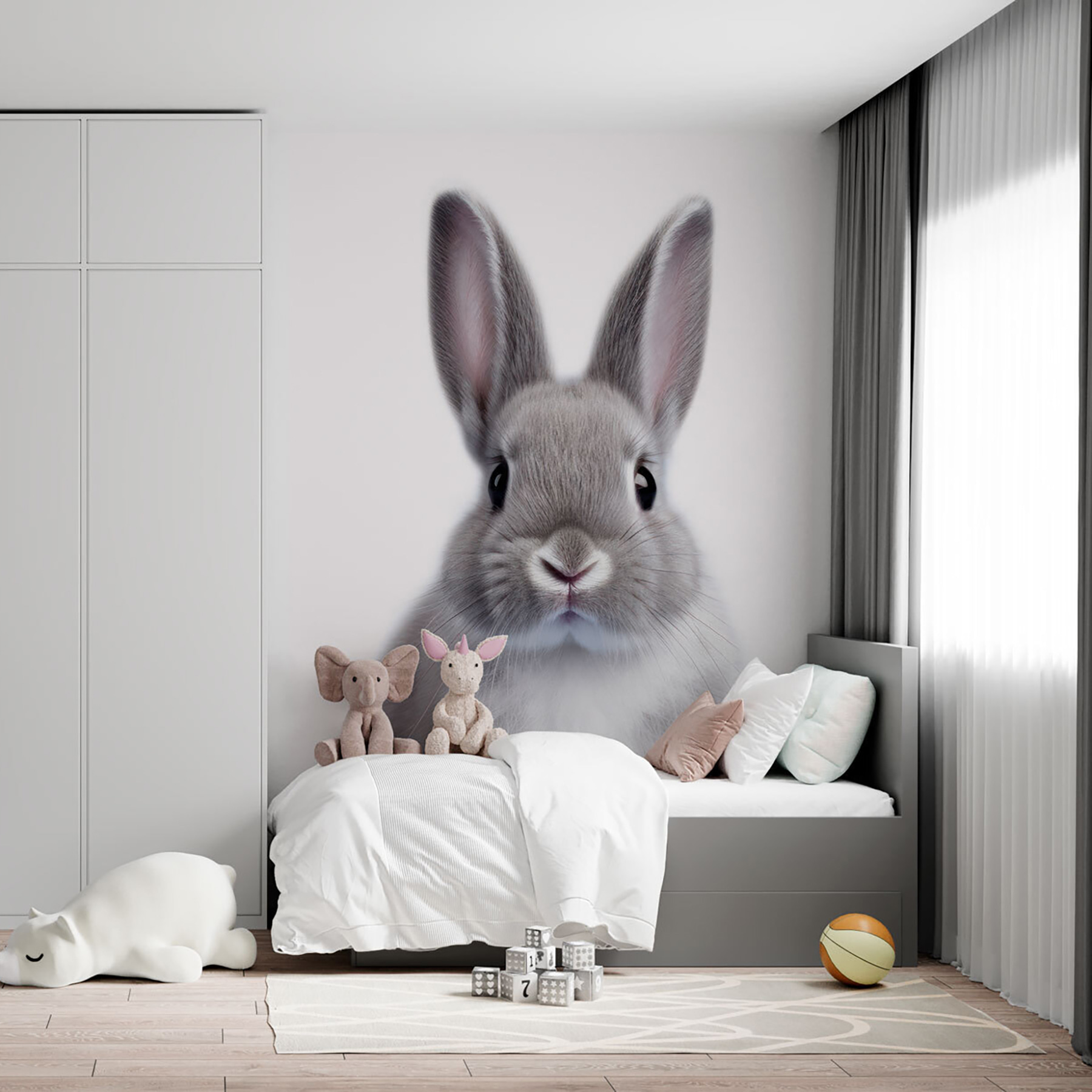 Dodaj odrobinę słodyczy i uroku do każdego pokoju dzięki tej fototapecie ściennej z uroczym króliczkiem o najdelikatniejszym futerku, które można niemal poczuć przez obraz. Jest idealna do pokoju dziecięcego – wyobraź sobie chichoty i niekończące się historie inspirowane tym uroczym małym stworzeniem. To jak posiadanie zwierzaka bez sprzątania! Twoja przestrzeń natychmiast staje się przytulna i zachęcająca, co czyni ją idealnym tłem dla rodzinnych wspomnień. Poza tym, kto oprze się tym wielkim oczom i puszystym policzkom? To coś więcej niż dekoracja; to odrobina radości na ścianie.