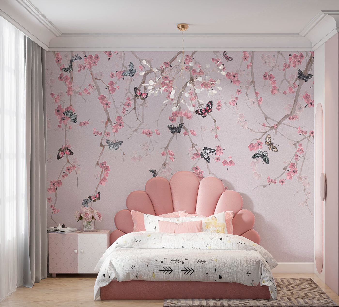 Wyobraź sobie, że budzisz się w spokojnym ogrodzie motyli na swojej ścianie – jakby natura po prostu wpadła się przywitać. Ta fototapeta “Motyl na białej powierzchni” bez wysiłku wprowadza spokojną atmosferę do każdego pomieszczenia. Delikatne gałęzie z miękkimi różowymi kwiatami delikatnie kołyszą trzepoczące motyle, tworząc senną ucieczkę od codziennego zgiełku. Idealna do cichego zakątka lub nawet tętniącego życiem salonu, ta fototapeta szepcze spokój. To nie tylko dekoracja – to doświadczenie, przypominające o zatrzymaniu się i cieszeniu się prostymi pięknościami życia. Niezależnie od tego, czy popijasz herbatę, czy nadrabiasz zaległości w ulubionej książce, ta fototapeta sprawi, że poczujesz się jak w swoim własnym raju. Kto nie pokochałby odrobiny kapryśnego uroku na swojej ścianie?