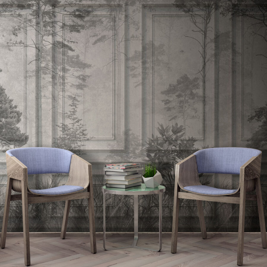 Wyobraź sobie, że wchodzisz do pokoju, w którym natura łączy się z klasyczną architekturą. To właśnie robi ta fototapeta – to jak przeniesienie spokojnej leśnej scenerii do eleganckiej biblioteki. Stonowane odcienie łączą się tak płynnie, jakbyś wpadł w ponadczasową powieść w deszczowy dzień. To uspokajający efekt – idealny do kącika do czytania lub salonu, w którym chcesz po prostu odetchnąć. Tekstura z efektem boiserie? Dodaje wyrafinowanego stylu, sprawiając, że przestrzeń staje się elegancka, ale wciąż zachęcająca. Goście będą pod wrażeniem, ale co ważniejsze, poczujesz się, jakbyś miał kawałek spokoju w domu.