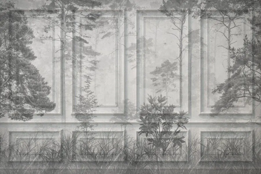 Wyobraź sobie, że wchodzisz do pokoju, w którym natura łączy się z klasyczną architekturą. To właśnie robi ta fototapeta – to jak przeniesienie spokojnej leśnej scenerii do eleganckiej biblioteki. Stonowane odcienie łączą się tak płynnie, jakbyś wpadł w ponadczasową powieść w deszczowy dzień. To uspokajający efekt – idealny do kącika do czytania lub salonu, w którym chcesz po prostu odetchnąć. Tekstura z efektem boiserie? Dodaje wyrafinowanego stylu, sprawiając, że przestrzeń staje się elegancka, ale wciąż zachęcająca. Goście będą pod wrażeniem, ale co ważniejsze, poczujesz się, jakbyś miał kawałek spokoju w domu.