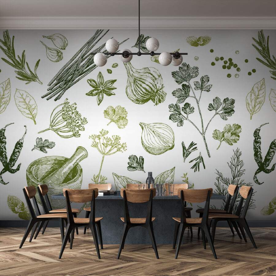 Przekształć każdą kulinarną przestrzeń w pachnącą przystań dzięki tej zachwycającej fototapecie z żywym asortymentem ziół i przypraw. Wyobraź sobie żywe zielenie i ziemiste odcienie tańczące na ścianach, dzięki czemu każdy posiłek będzie nieco bardziej magiczny. To tak, jakbyś miał mini ogród w swojej kuchni, niemal kuszący do przygotowania pesto lub przygotowania świeżej sałatki. Poza tym, któż nie uwielbia takich miejsc do rozpoczęcia rozmowy? Goście będą przyciągać uwagę, pytając o te unikalne wydruki. Powieś go w przytulnym zakątku i obserwuj, jak przynosi ciepło i inspirację, zamieniając czas gotowania w czystą radość. Urozmaić swój wystrój!