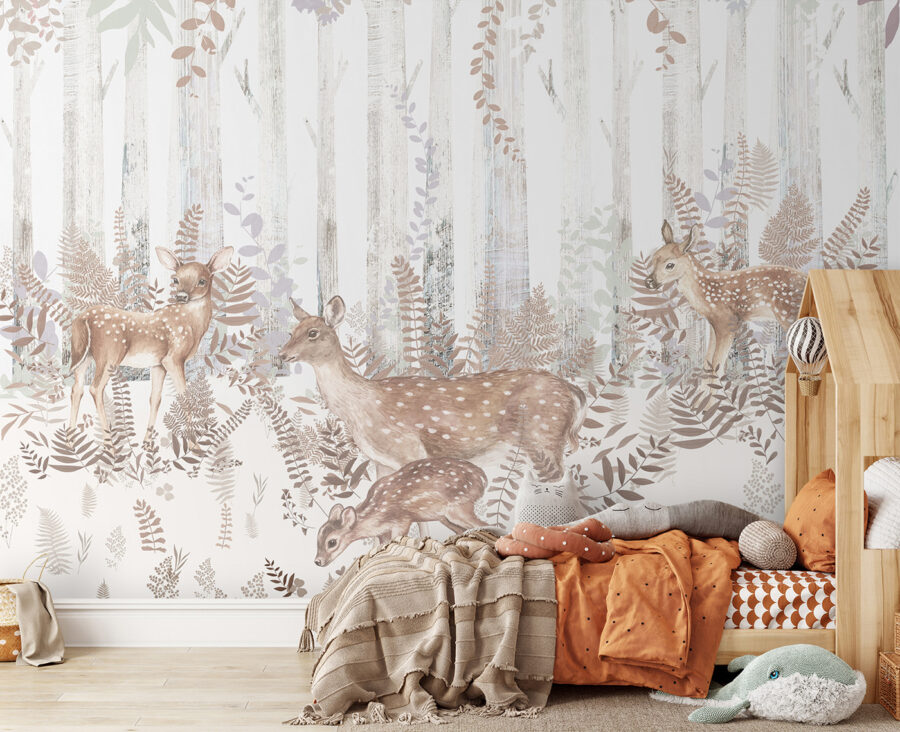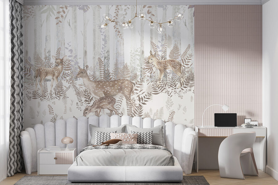 Widziałeś kiedyś fototapetę z jeleniami hasającymi po lesie? Ta jest po prostu magiczna – to jak scena prosto z bajki! Wyobraź sobie pokój swojego malucha z tym czarującym nadrukiem; miękkie kolory i delikatne tekstury są idealne do pobudzania wyobraźni podczas zabawy lub opowiadania bajek na dobranoc. Jest coś uspokajającego w tych uroczych jelonkach – wydają się niemal gotowe do zeskoczenia ze ściany. Niezależnie od tego, czy jest to wymarzona przestrzeń dla twojej córki, czy spokojny pokój dziecięcy dla twojego niemowlęcia, ta fototapeta doda kapryśnego, ale spokojnego akcentu. To coś więcej niż dekoracja; to czysty leśny urok!
