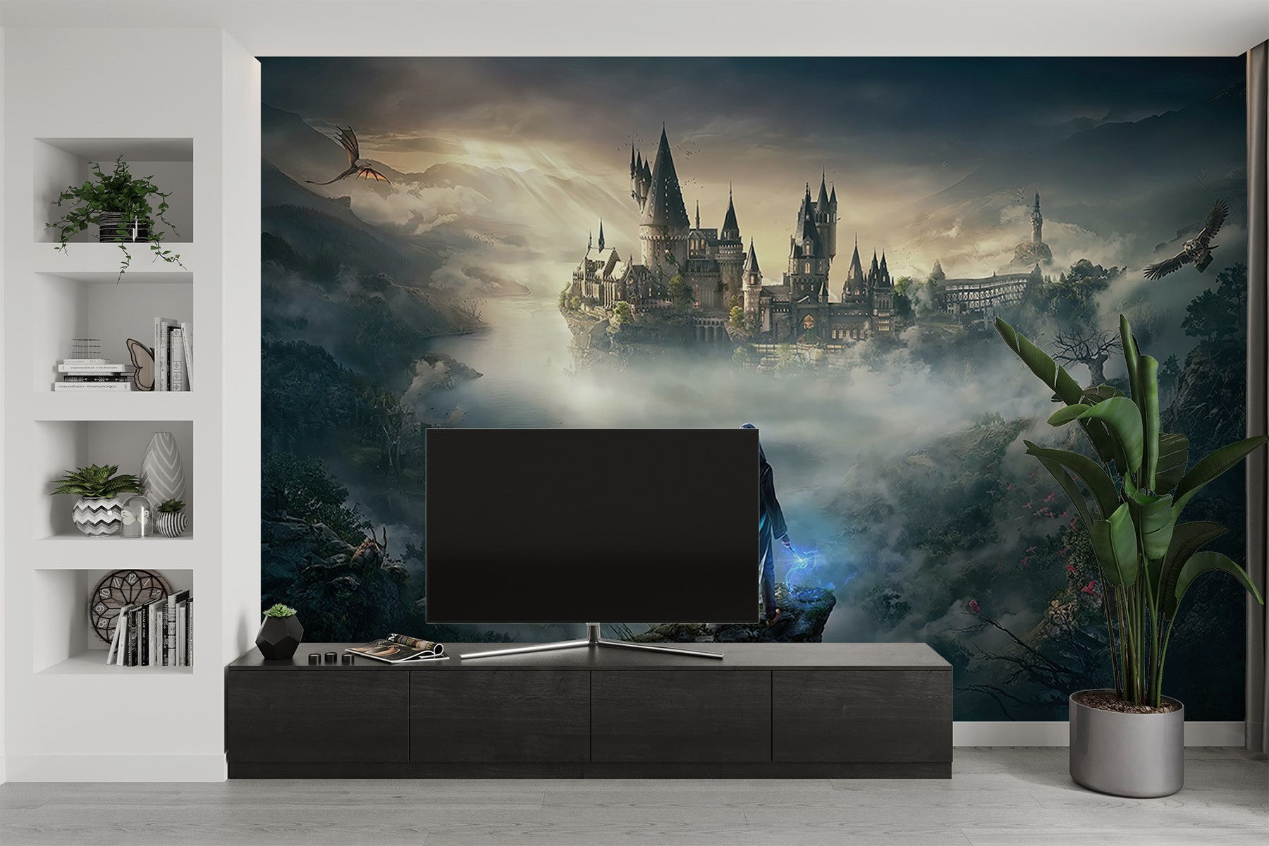Zanurz się w świecie cudów dzięki tej oszałamiającej fototapecie ściennej, na której postać stoi na szczycie klifu, wpatrując się w czarujący zamek położony w tajemniczej mgle. To jak wejście do bajki na dobranoc, gdzie przygoda czeka tuż za horyzontem. Wyobraź sobie delikatne szepty smoków nad głową i zapach świeżej sosny wypełniający powietrze. Ten mebel otuli Twoją przestrzeń magią, pobudzając do marzeń i rozmów. Idealny do przytulnego kącika do czytania lub zabawnego pokoju dziecięcego – z pewnością zainspiruje wyobraźnię. Kto nie chciałby mieć widoku zamku każdego dnia? Daj się ponieść kaprysowi!