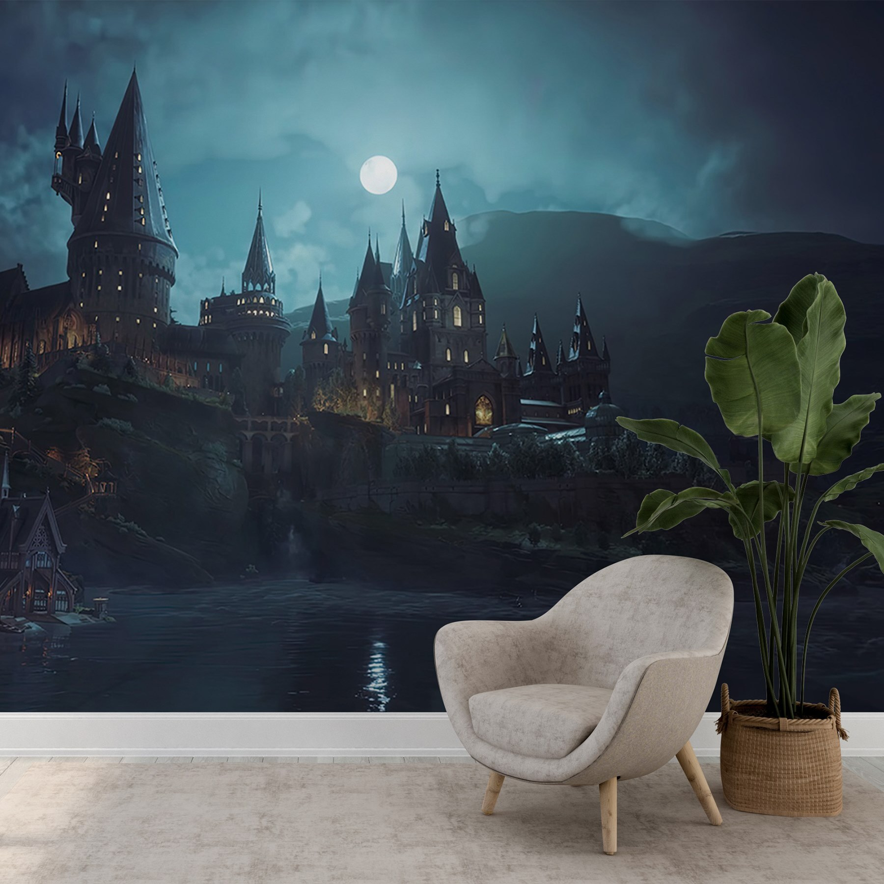 Przekształć swoją przestrzeń w senne zacisze dzięki tej czarującej fototapecie ściennej przedstawiającej zamek wznoszący się na wzgórzu pod świecącym księżycem. Wyobraź sobie przytulne wieczory spędzone na wpatrywaniu się w majestatyczne wieże i cieszeniu się magią nocy. To jak przeniesienie się do bajki, wprost do Twojego salonu. Delikatne błękity i ciemne cienie tworzą uspokajającą atmosferę, idealną do relaksu po długim dniu. Znajomi mogą nawet zapytać, czy byłeś w innym królestwie! Ta fototapeta to nie tylko sztuka; zachęca do marzeń i pobudza do rozmów, sprawiając, że każda ściana staje się urzekającym punktem centralnym.