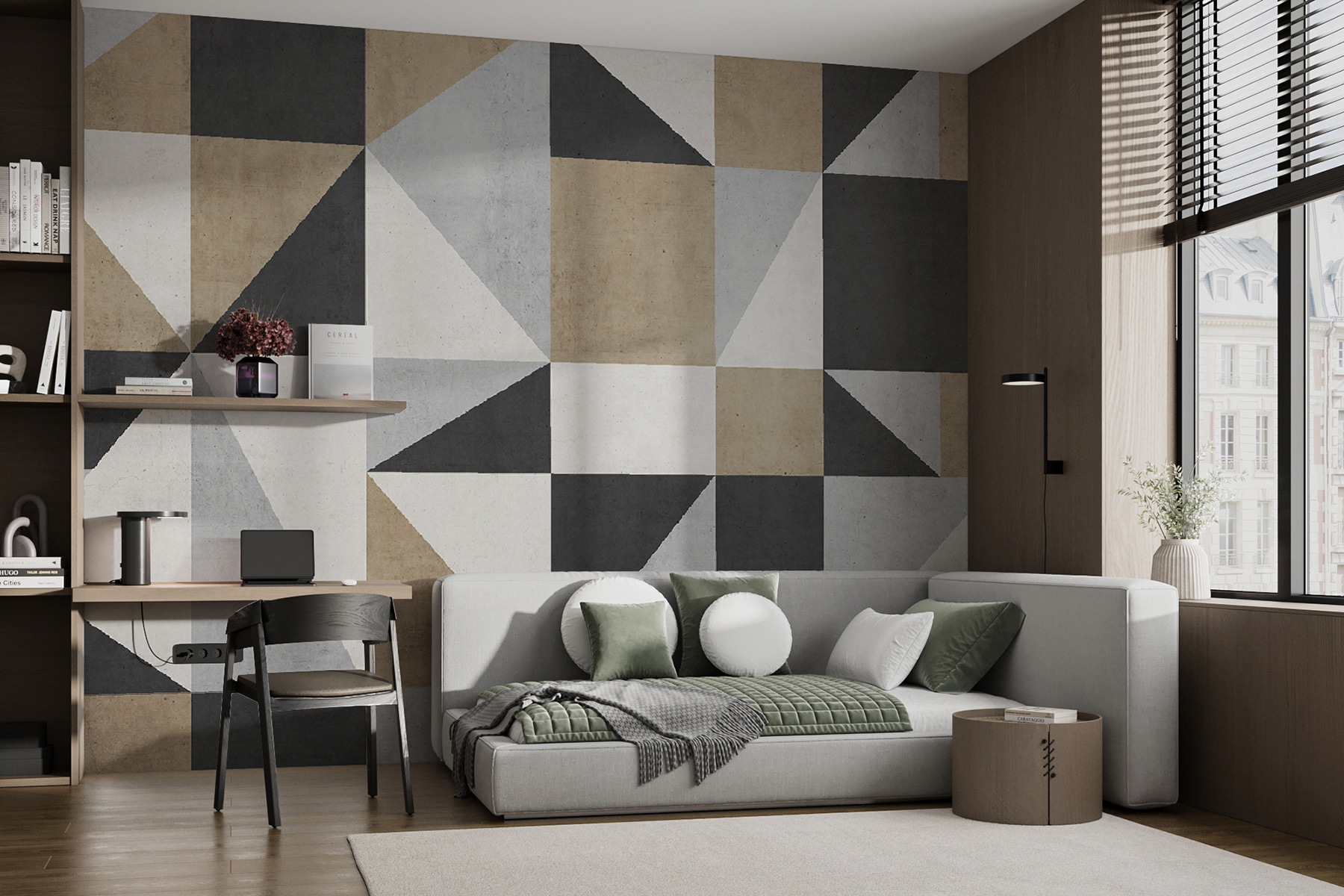 Chcesz wprowadzić odrobinę modnego stylu do swojej przestrzeni? Sprawdź tę fototapetę z geometrycznym wzorem w neutralnych odcieniach – to jak stylowa układanka dla twoich ścian! Idealna do każdego pomieszczenia, które potrzebuje odrobiny dodatkowej energii, ta fototapeta łączy ciepły beż, chłodną szarość i ziemistą czerń w hipnotyzujący wzór. Wyobraź sobie zwijanie się z książką, gdy kształty tworzą uspokajające tło, lub zabawianie przyjaciół, którzy nie mogą przestać podziwiać twojego eklektycznego gustu. A co najlepsze? Jest wystarczająco subtelny, aby pasować do niemal wszystkiego, ale wystarczająco intrygujący, aby się wyróżniać. Niezależnie od tego, czy stawiasz na nowoczesny szyk, czy po prostu chcesz czegoś wyjątkowego, ta fototapeta będzie tematem rozmów.