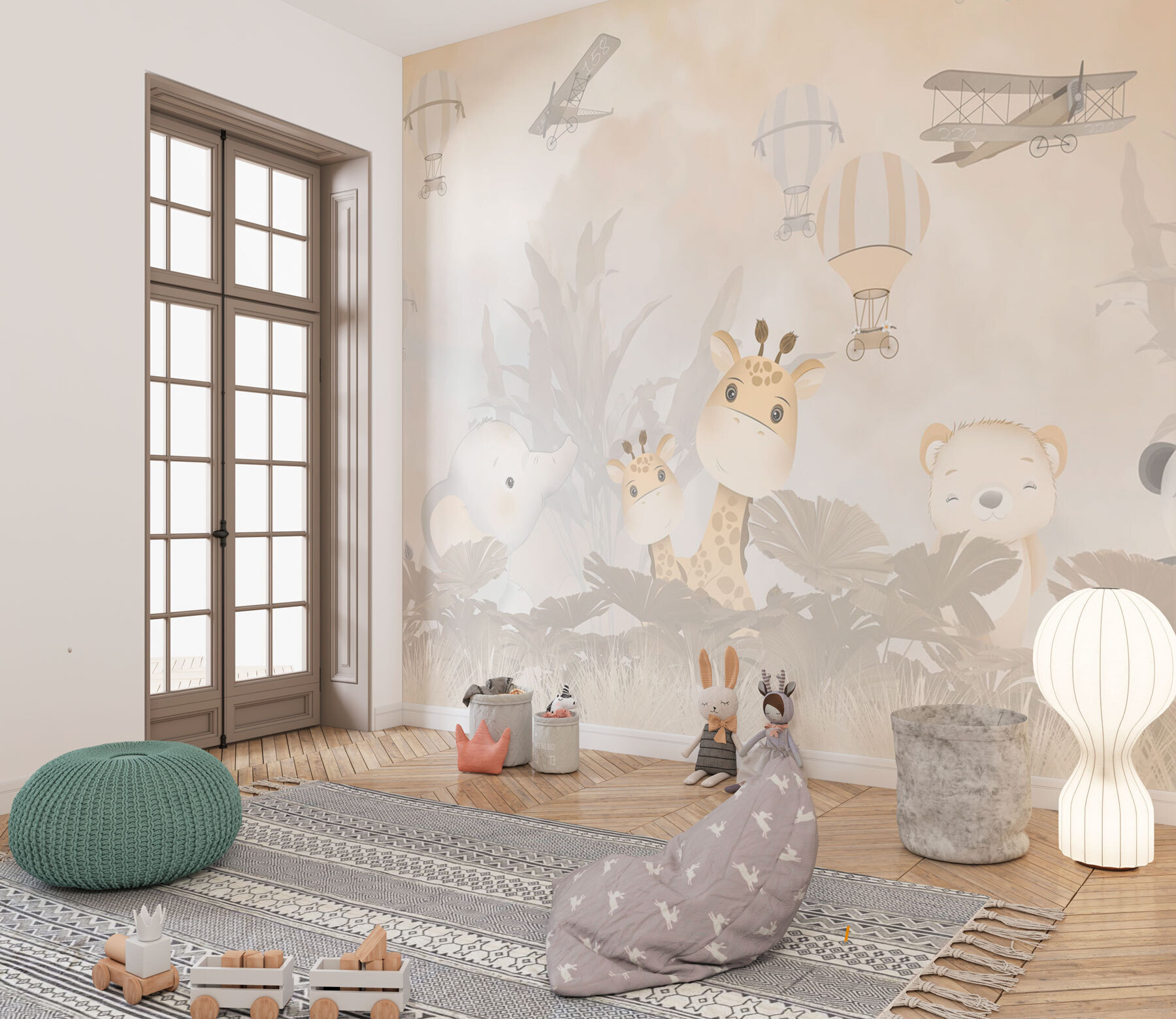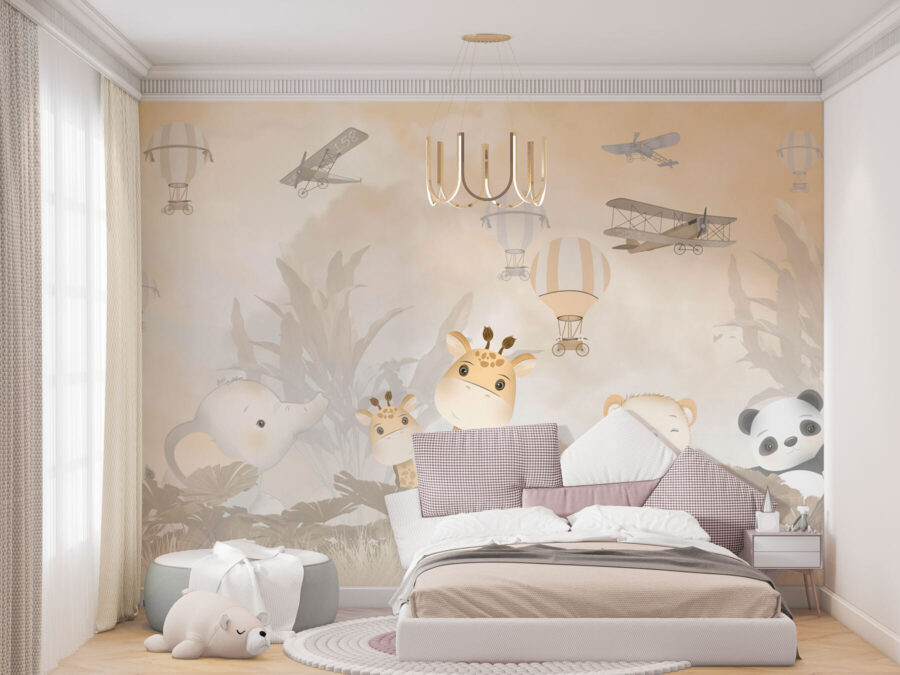 Czy kiedykolwiek czułeś, że Twojemu dziecięcemu pokojowi przydałaby się odrobina magii? Poznaj fototapetę ścienną “Hot Air Balloon in the Sky”, czarujący element, który jest idealny dla każdego małego marzyciela. Wyobraź to sobie: zabawne balony na gorące powietrze i urocze zwierzęta unoszące się na miękkim, kapryśnym niebie. To jak bajka, która ożywa na twojej ścianie.