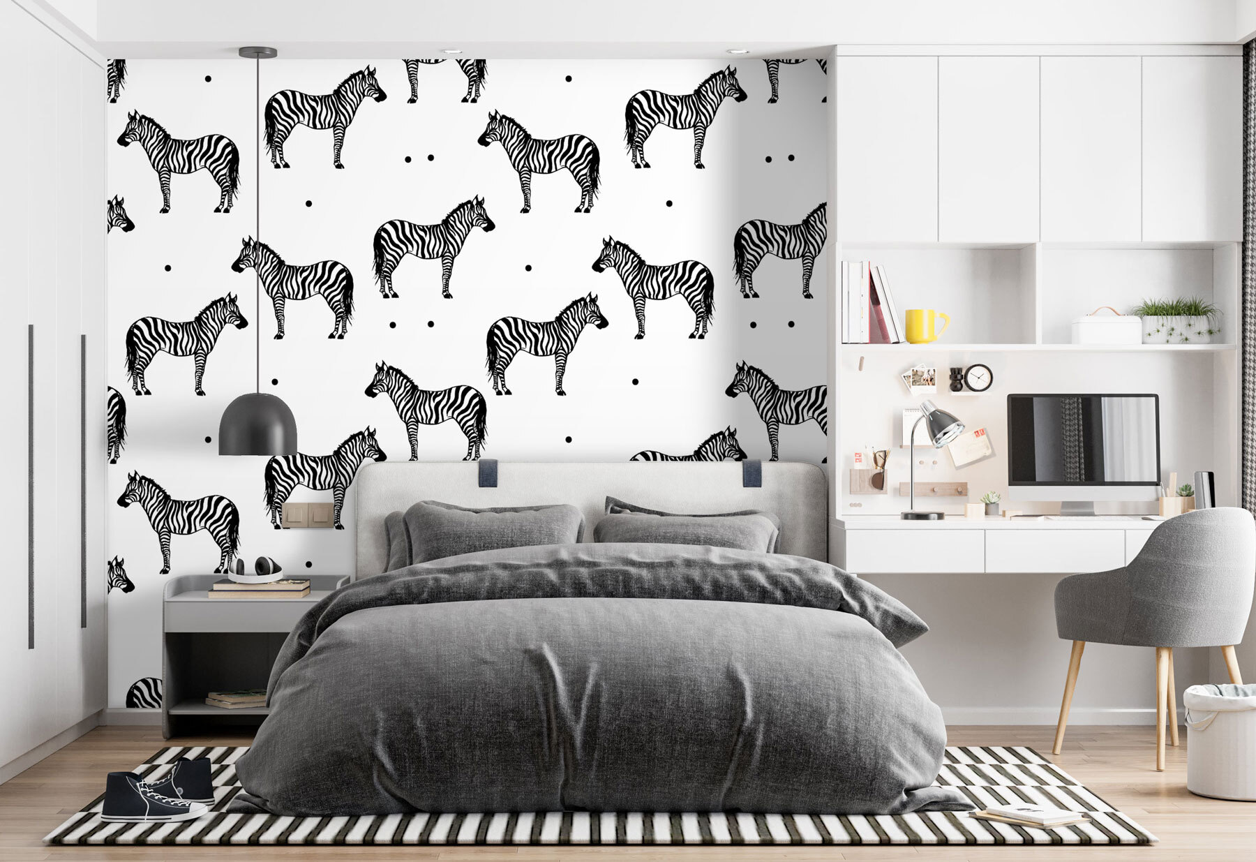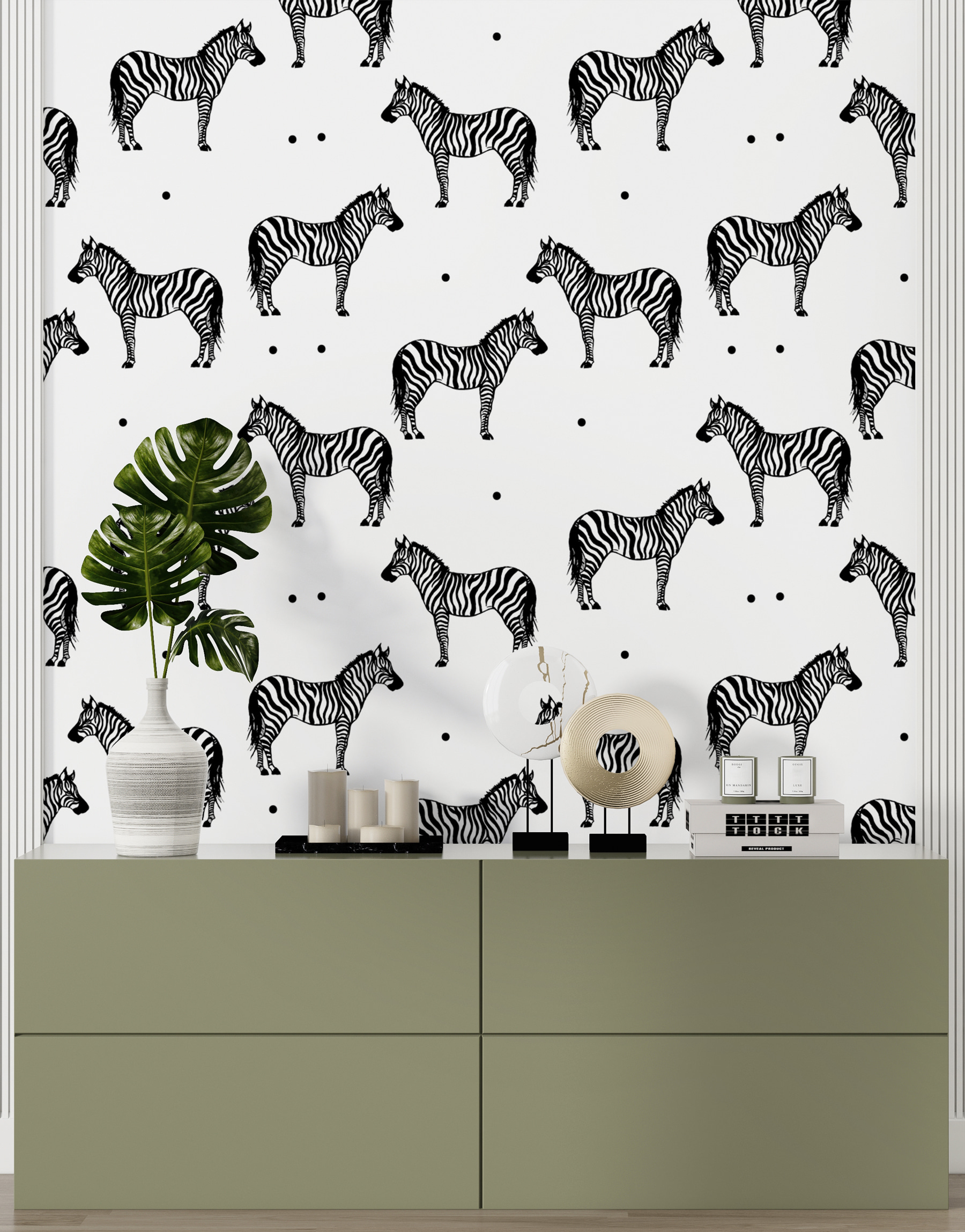 Sprawdź tę zabawną fototapetę z wzorem zebry na czystym białym tle. Idealnie nadaje się do dodania odrobiny dzikiej natury do salonu, a nawet pokoju dziecięcego. Wyobraź sobie, że pijesz poranną kawę, podczas gdy te dziwaczne zebry stoją na straży – to jak mini safari w twoim domu. Czarno-biały kontrast jest super nowoczesny, pasujący do współczesnych przestrzeni, a spójrzmy prawdzie w oczy, kto nie kocha zebr? Są jak kody kreskowe natury! Uśmiechniesz się za każdym razem, gdy przejdziesz obok tego uroczego wzoru.