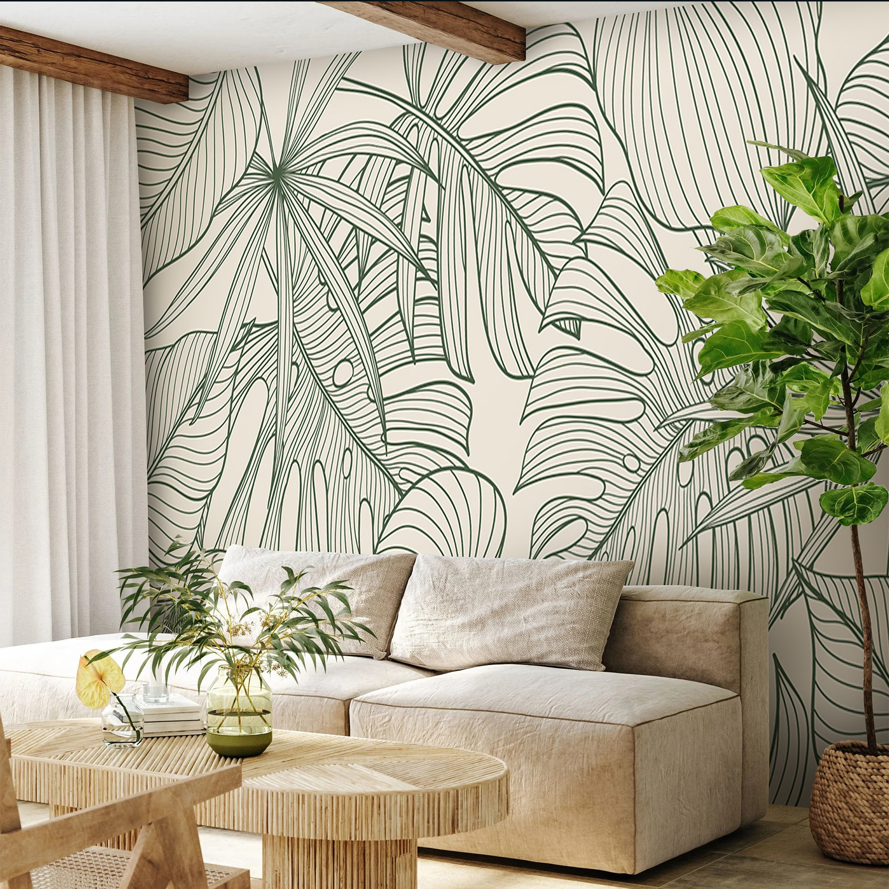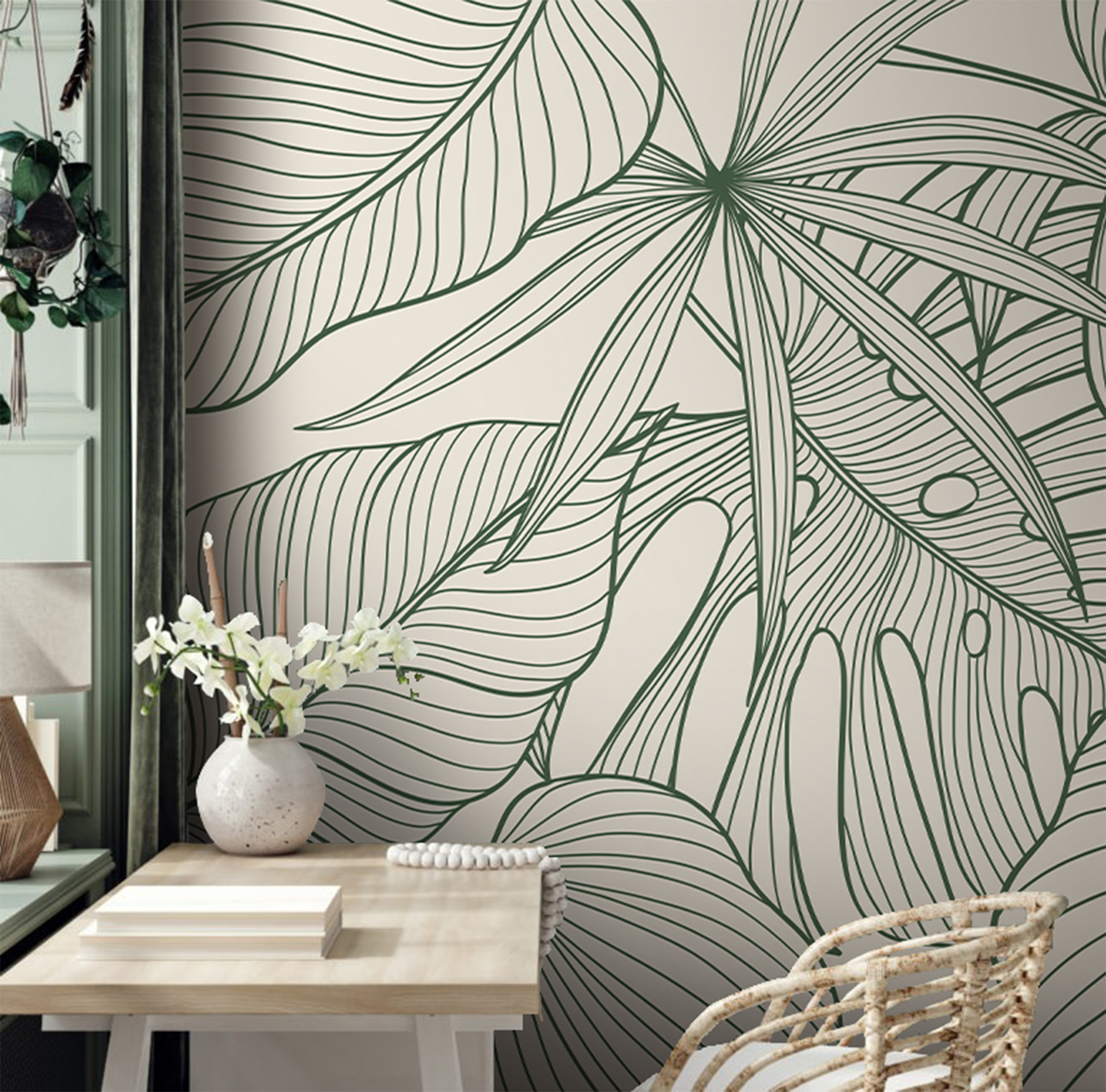 Ożyw swoją przestrzeń życiową fototapetą ścienną “Green Leaves With Intricate Line Patterns”. To wspaniałe dzieło łączy w sobie artystyczne linie i bujne wzory liści, idealne do dodania odrobiny natury. Wyobraź sobie, że wchodzisz do swojego pokoju i czujesz się, jakbyś wkroczył do eleganckiego, tropikalnego sanktuarium. To jak posiadanie kawałka magii dżungli bez wilgoci! Niezależnie od tego, czy jesteś miłośnikiem przyrody, czy po prostu kimś, kto lubi wyjątkowe, przyciągające wzrok dekoracje, ta fototapeta zmienia zasady gry. Co więcej, można ją odklejać i przyklejać, co oznacza łatwą instalację – twoje ściany nie będą już czuć się zaniedbane!