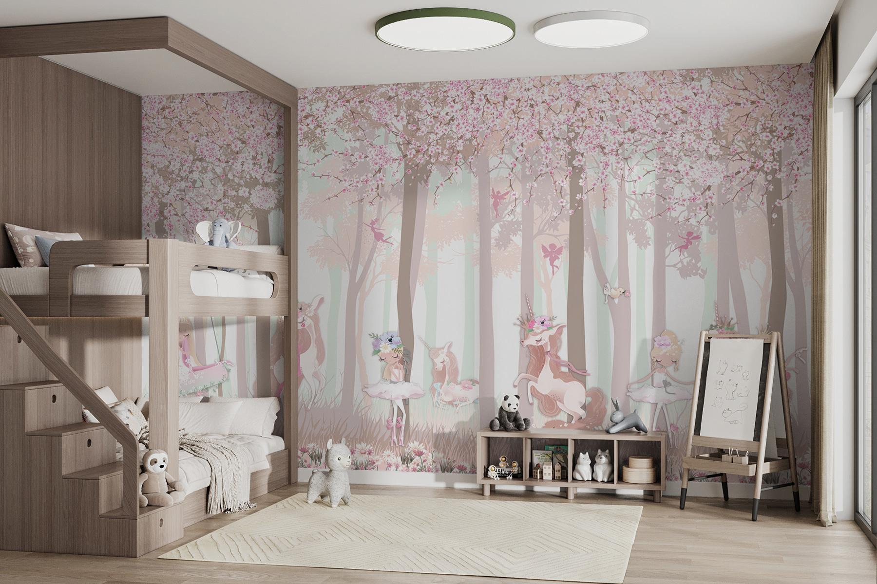 Wyobraź sobie, że wchodzisz do bajki za każdym razem, gdy wchodzisz do pokoju! Ta oszałamiająca fototapeta ścienna “Cartoon of a Ballerina” jest idealna do stworzenia marzycielskiego pokoju dziecięcego lub dodania odrobiny kaprysu do pokoju córki. Delikatne pastelowe odcienie i magiczna scena leśna, wraz z eleganckimi baletnicami i wdzięcznymi jednorożcami, sprawiają, że czujesz się, jakbyś wędrował przez zaczarowany las.
