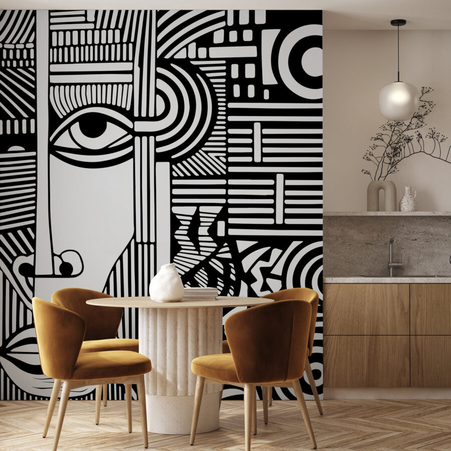 To nie jest zwykła fototapeta – to dzieło sztuki nowoczesnej, które może całkowicie odmienić Twoją przestrzeń. Dzięki skomplikowanym czarno-białym liniom tworzącym abstrakcyjną twarz, to tak, jakbyś miał na ścianie arcydzieło inspirowane Picassem, bezpośrednio w swoim salonie. Odważne wzory i uderzające kontrasty sprawiają, że nikt nie może go zignorować.